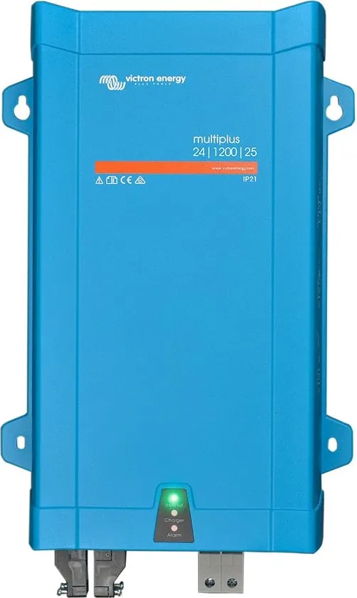 Інвертор Victron Energy MultiPlus 24/1200/25-16 — це універсальний пристрій з функцією ДБЖ, який поєднує інвертор і інтелектуальний зарядний пристрій в одному корпусі. Завдяки потужності 1200 ВА / 1000 Вт і правильній синусоїді на виході він безпечно живить побутову техніку, електроніку та інструменти. Підтримка акумуляторів 24 В, високий ККД 94 % і швидке перемикання на роботу від батареї роблять цей інвертор ідеальним вибором для дому, дачі або невеликого офісу. Victron Energy MultiPlus 24/1200/25-16 підтримує паралельне підключення до шести інверторів для збільшення потужності, а також налаштування трифазної системи з трьох пристроїв. Вбудований чотириступеневий зарядний пристрій із струмом 25 А оптимізує роботу акумуляторів і подовжує їхній ресурс. Інтелектуальні режими керування навантаженням, режим очікування з мінімальним споживанням енергії та комплексні системи захисту гарантують стабільну й безпечну роботу навіть у складних умовах експлуатації.