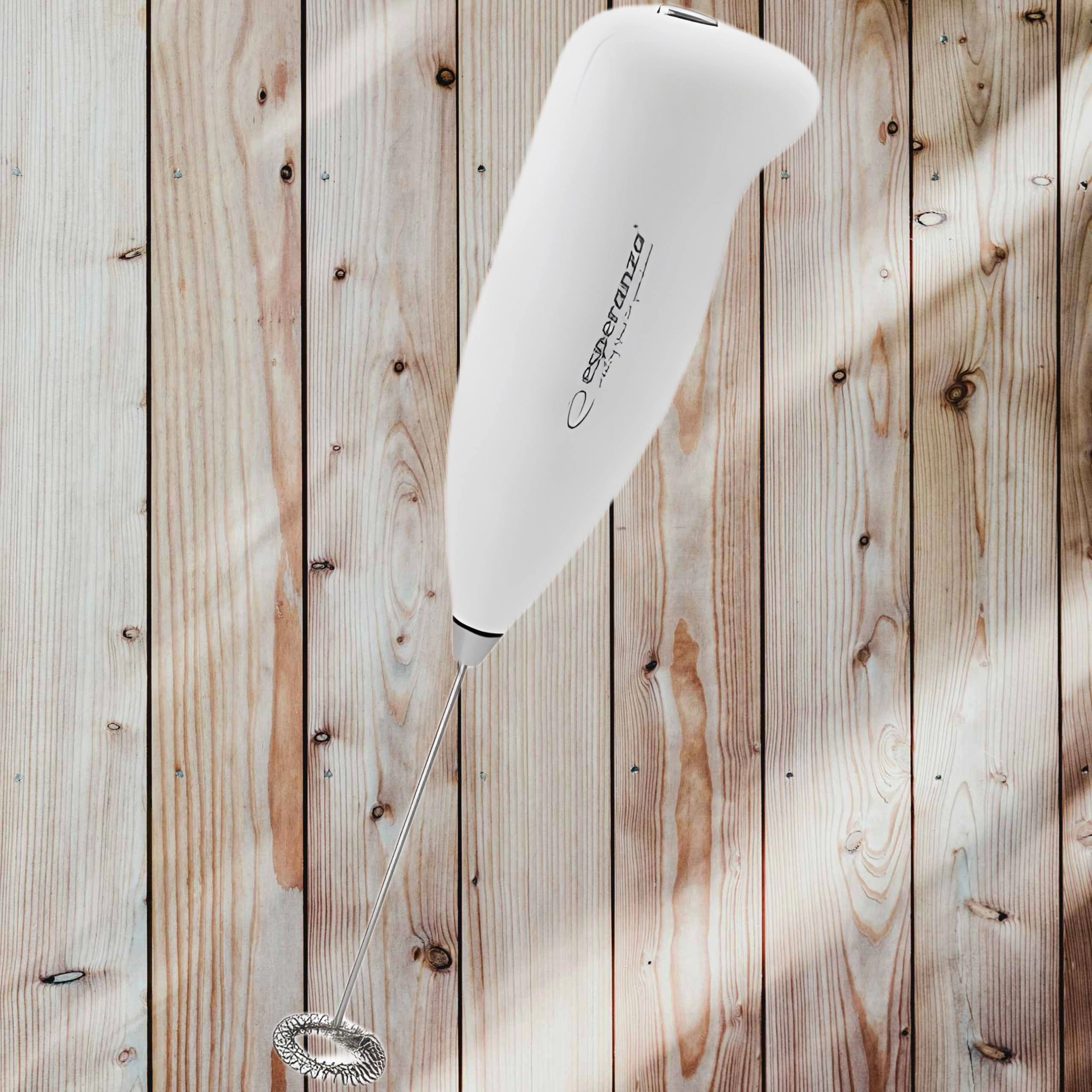 Esperanza EKF001 - це ручний міксер або капучинатор від компанії Esperanza. Такий міксер має дуже компактні розміри, довжина його становить не більше 15 см, все всього 210 грам, він ергономічно поміщається в руку користувача, таким чином їм зручно маніпулювати. Прогумована основа капучинатора дозволить вам утримати його навіть мокрими руками. Також, основа міксера має ергономічні поглиблення для пальців. Для чого ж потрібен такий маленький і зручний міксер як Esperanza EKF001? По-перше, він призначається для збивання молока для капучіно або лате, якщо ваша кавоварка не має власного взбивателя. По-друге, ви можете збити їм невелику кількість рідини, коли немає потрібні діставати великий погружной блендер. Наприклад, це може бути яєчня на омлет або дитяче харчування для однорічних дітей.