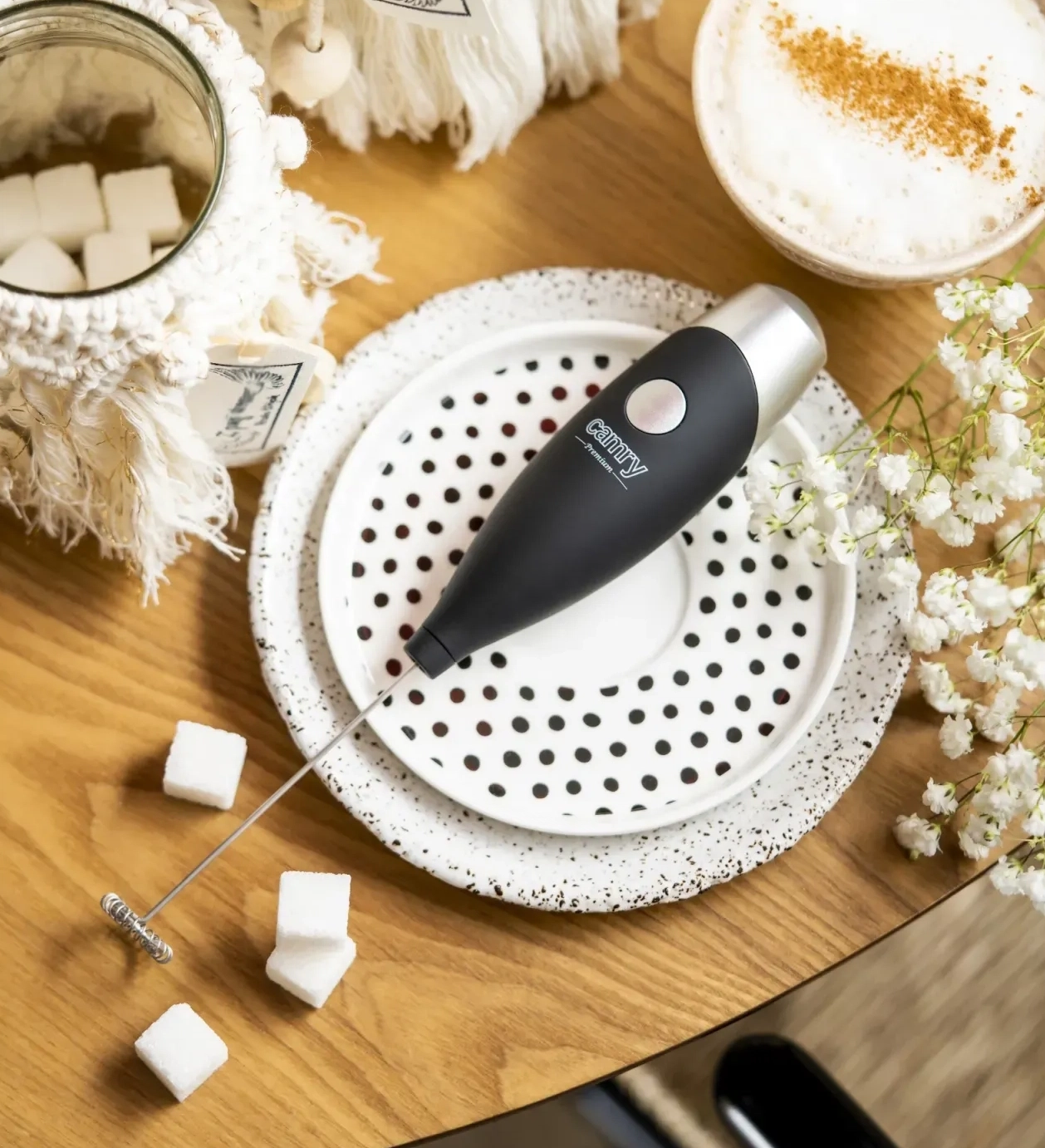 Спінювач молока Camry CR 4501 має компактні розміри, зручну форму і привабливий вигляд. Він легко перетворює молоко в досконалу кремоподібну піну. Завдяки такому пристрою ви досить просто приготуєте домашнє какао, гарячий шоколад, каву з вершками, лате, мокко, макіато, фраппе, з його допомогою можна винаходити нові смачні та ароматні напої.