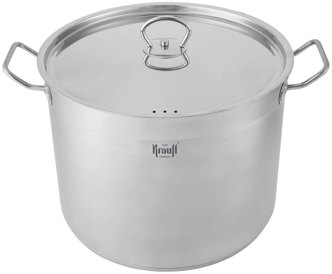Містка каструля Krauff Gegenbild, чудово підійде для приготування їжі на велику кількість персон. Наприклад, така ємність стане незамінним кухонним предметом для кухарів ресторанів, кафе, інших місць громадського харчування. Вона полегшить кухарському роботу, оскільки приготування їжі в ній буде тільки задоволенням, і заощадить час, оскільки в такій ємності одночасно можна приготувати достатню кількість страви. Каструля Krauff Gegenbild і її кришка виготовлені з високоякісної неіржавкої сталі 18/10, яка прекрасно протистоїть корозії, дрібним подряпинам, що не піддається деформації. Ця сталь є екологічно чистим, безпечним для здоров'я матеріалом. Їжа, приготована в такій ємності, не набуде небажаного смаку або запаху. Перевагою такої каструлі є мірна шкала на внутрішній поверхні, завдяки якій можна без додаткових вимірювальних ємностей наповнити посуд потрібною кількістю рідини. Металеві ручки мають дуже зручну та практичну форму.