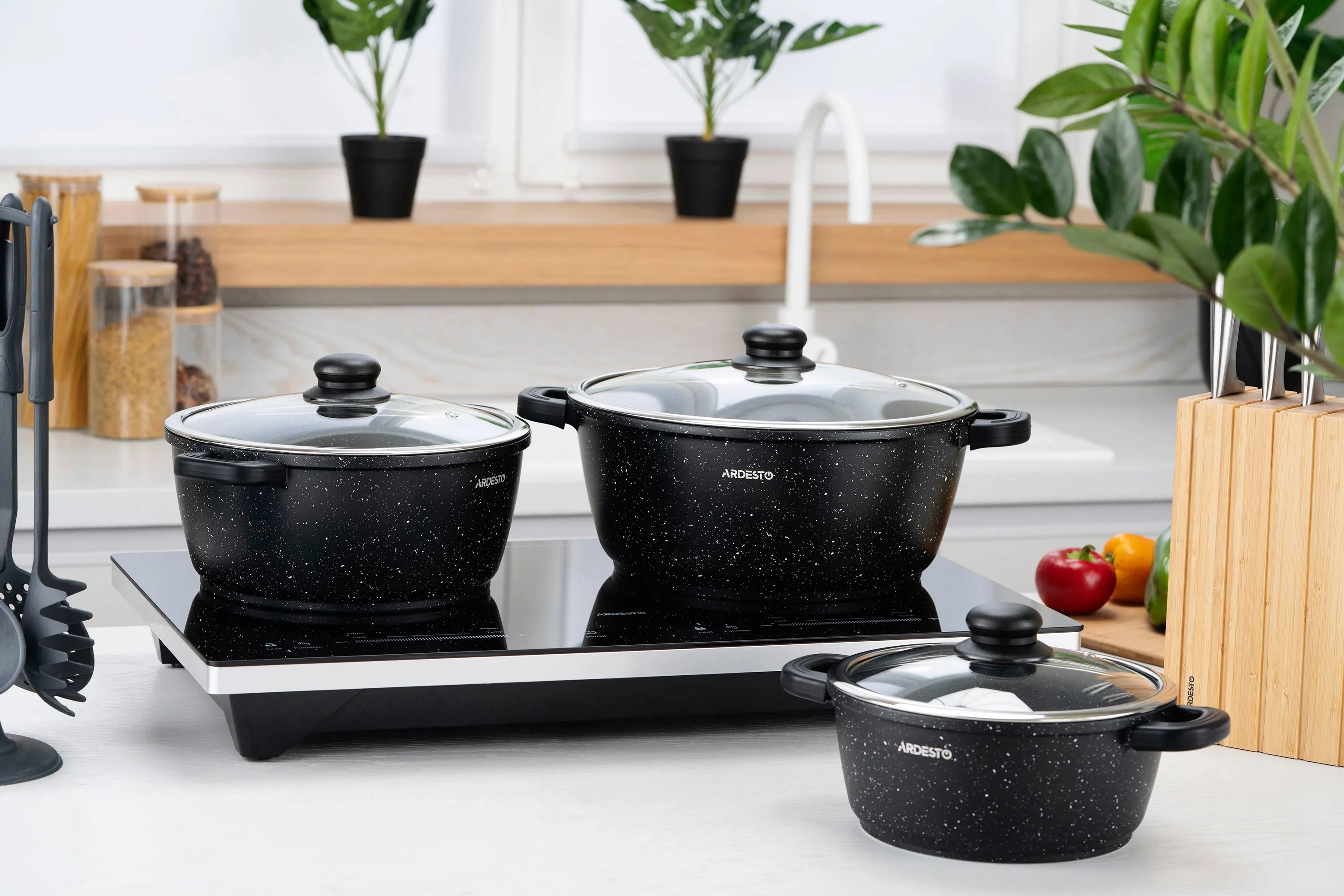 Каструлю ARDESTO Gemini Anzio виготовлено з литого алюмінію. Її об’єм становить 1,2 л, а діаметр – 16 см. Стінки завтовшки 1,5 мм, тоді як товщина дна становить 4,3 мм – запорука рівномірного нагрівання. Завдяки протипригарному мармуровому покриттю процес приготування буде суттєво простішим. Особливістю виробу є знімні силіконові накладки на алюмінієві руків’я, які забезпечують комфортне та безпечне переміщення каструлі, навіть коли її розігріто. Скляна кришка, яка також є в комплектованні, має отвір для відведення пари. Каструля ARDESTO Gemini Anzio сумісна з усіма видами плит, а саме: газовими, електричними, склокерамічними, галогенними та індукційними. Допустиме миття в посудомийній машині.
