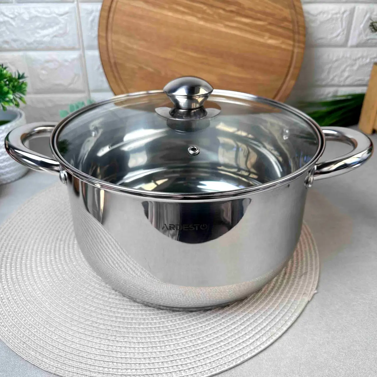 ARDESTO Gemini Gourmet - ідеальне рішення для вашої кухні. Ручки виготовлені з неіржавкої сталі, забезпечуючи міцність, зручність і безпеку під час використання. Каструля поставляється з прозорою скляною кришкою, оснащеною отвором для зайвої пари, що допоможе вам контролювати процес приготування страв. Каструля підходить для різних типів плит, включно з газовими, електричними, склокерамічними, галогенними та навіть індукційними. Потовщене дно забезпечить рівномірний розподіл тепла та ефективне приготування їжі. На внутрішніх стінках є мірна шкала. Також, посуд цієї серії простий у догляді - можна мити як вручну, так і в посудомийній машинці.