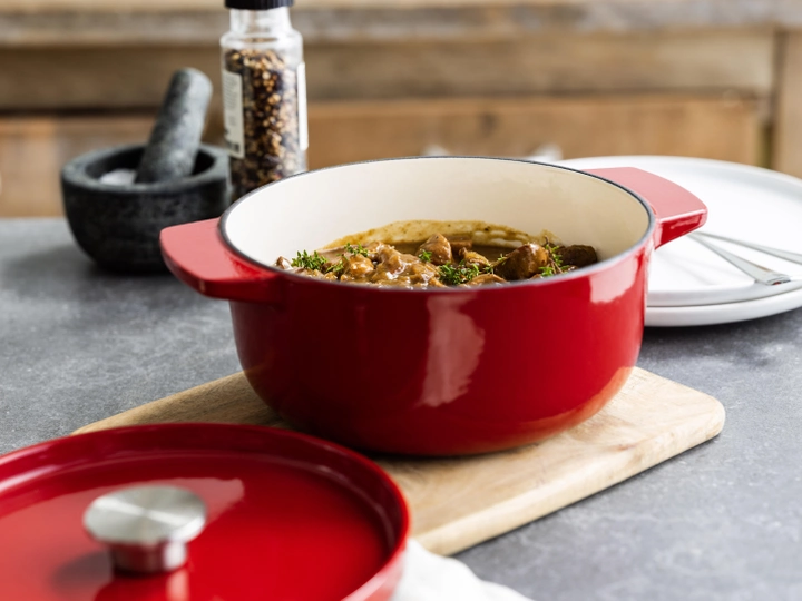 Представляємо універсальну колекцію чавунного посуду від KitchenAid - досконале поєднання міцності, елегантності та високої продуктивності. Виготовлений із високоякісного чавуну, він надійно утримує тепло, придатний як для повільного тушкування, так і для інтенсивного смаження. Цей посуд підходить для всіх типів плит, включно з індукційними, і може безпечно використовуватися в духовці. Простий в обслуговуванні завдяки емальованій поверхні, він забезпечує ідеальне збереження смаку і легке чищення навіть без використання хімічних засобів.