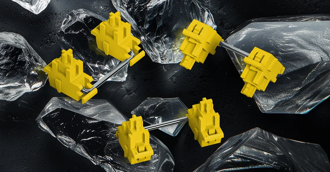 Попередньо змащені лінійні механічні перемикачі HATOR® Aurum забезпечують надзвичайну плавність натискання та комфортну гру без зусиль. Високоякісні компоненти, такі як нейлонова база, стем з POM пластику, контакти з паладієвого сплаву вкриті композитним золотом, додають витривалості та надійності.