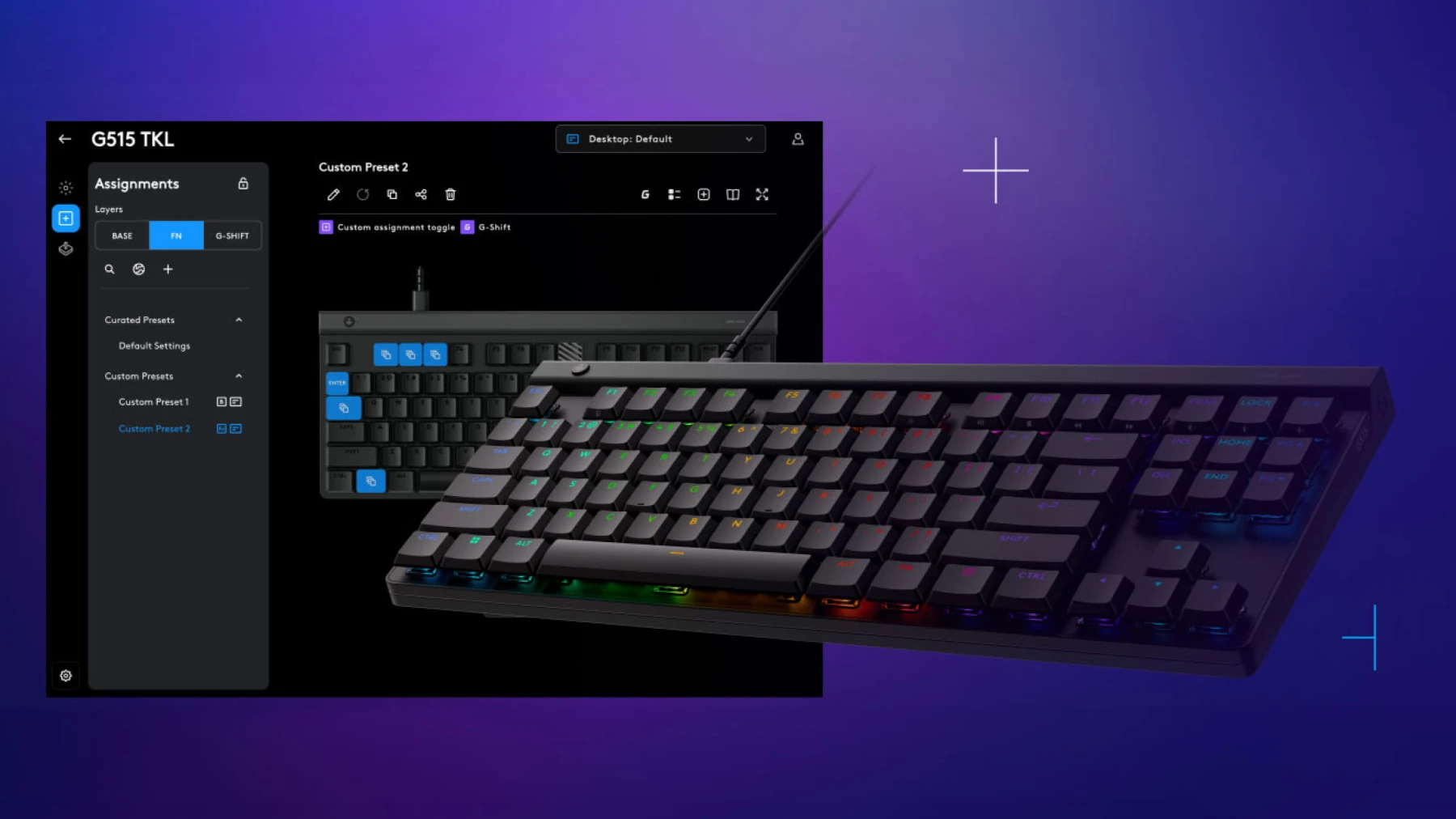Використовуйте G HUB для створення персоналізованого центру керування та програмування до 15 функцій на клавішу за допомогою KEYCONTROL. Призначте будь-яку клавішу відповідно до свого стилю гри.