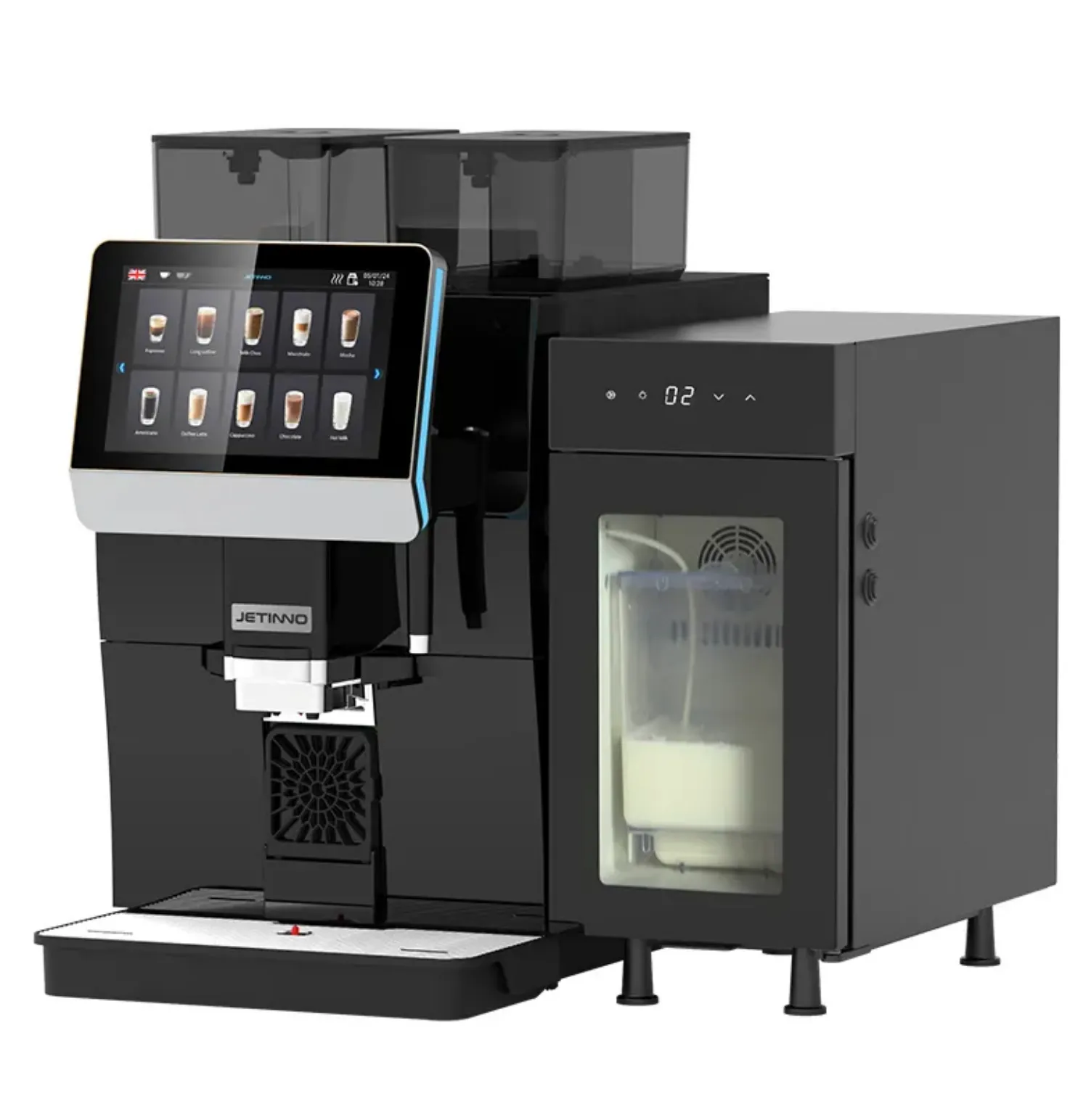 Jetinno JL32А - це професійна кавомашина, що поєднує передові технології, елегантний дизайн і неперевершену якість напоїв. Сенсорний дисплей 10" забезпечує інтуїтивне управління і вибір з більш ніж 20 рецептів. Подвійні контейнери для порошків дають змогу готувати не тільки каву, а й інші напої, включно з гарячим шоколадом. Можливість одночасної подачі кави і молока, два бойлери і два насоси забезпечують стабільну роботу і високу продуктивність. Машина підтримує інтернет-підключення, автоматичне очищення та індивідуальні налаштування, роблячи Jetinno JL32А ідеальним рішенням для бізнесу.