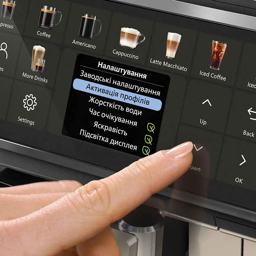 Легко обирайте улюблені напої завдяки сучасному сенсорному дисплею з кольоровими піктограмами, та налаштовуйте напій на свій смак.