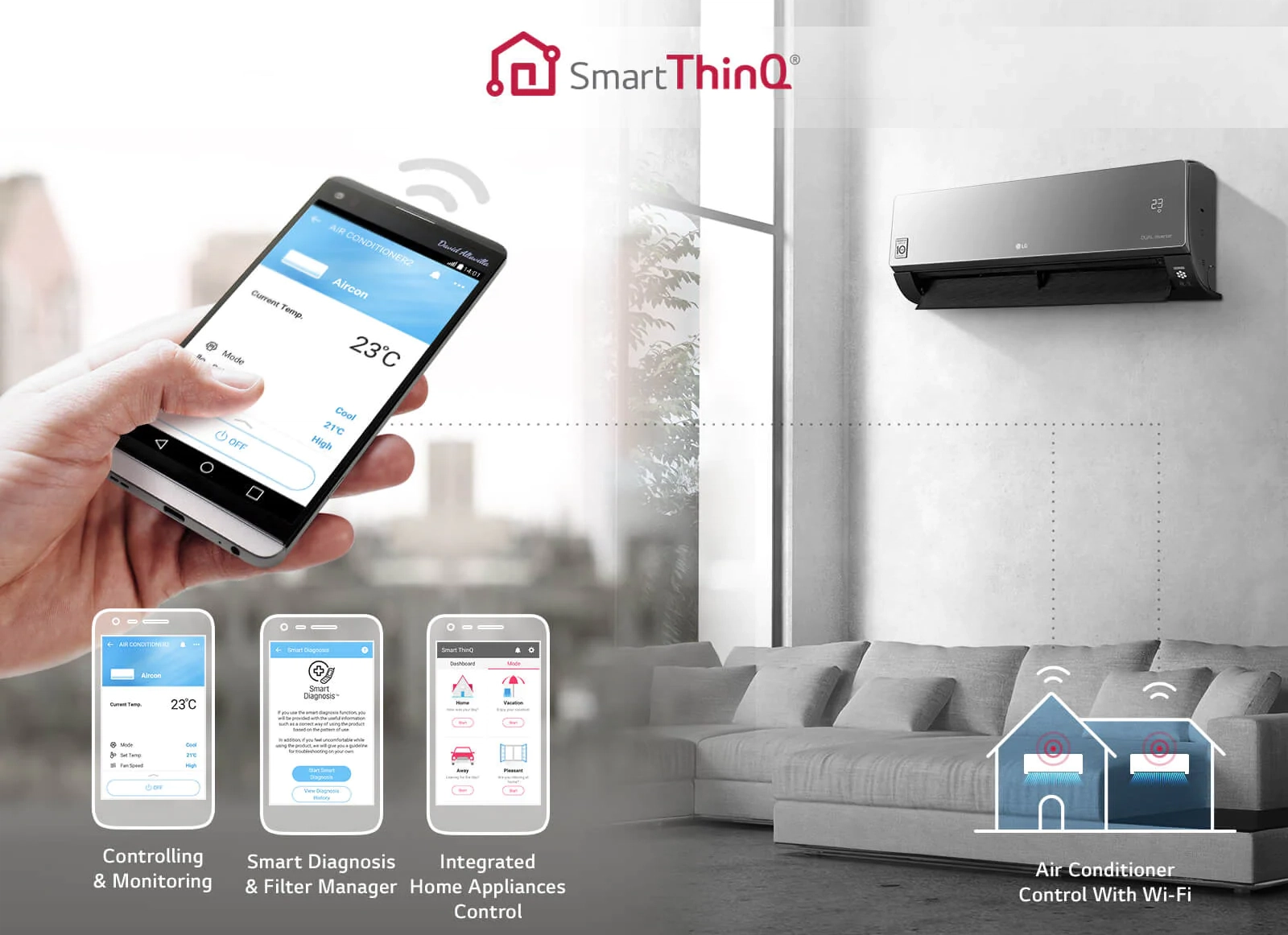 Вбудований Wi-Fi модуль і ексклюзивне додаток LG SmartThinQ дозволяє керувати вашим кондиціонером з будь-якої точки світу, використовуючи смартфон на базі платформ Android або iOS.