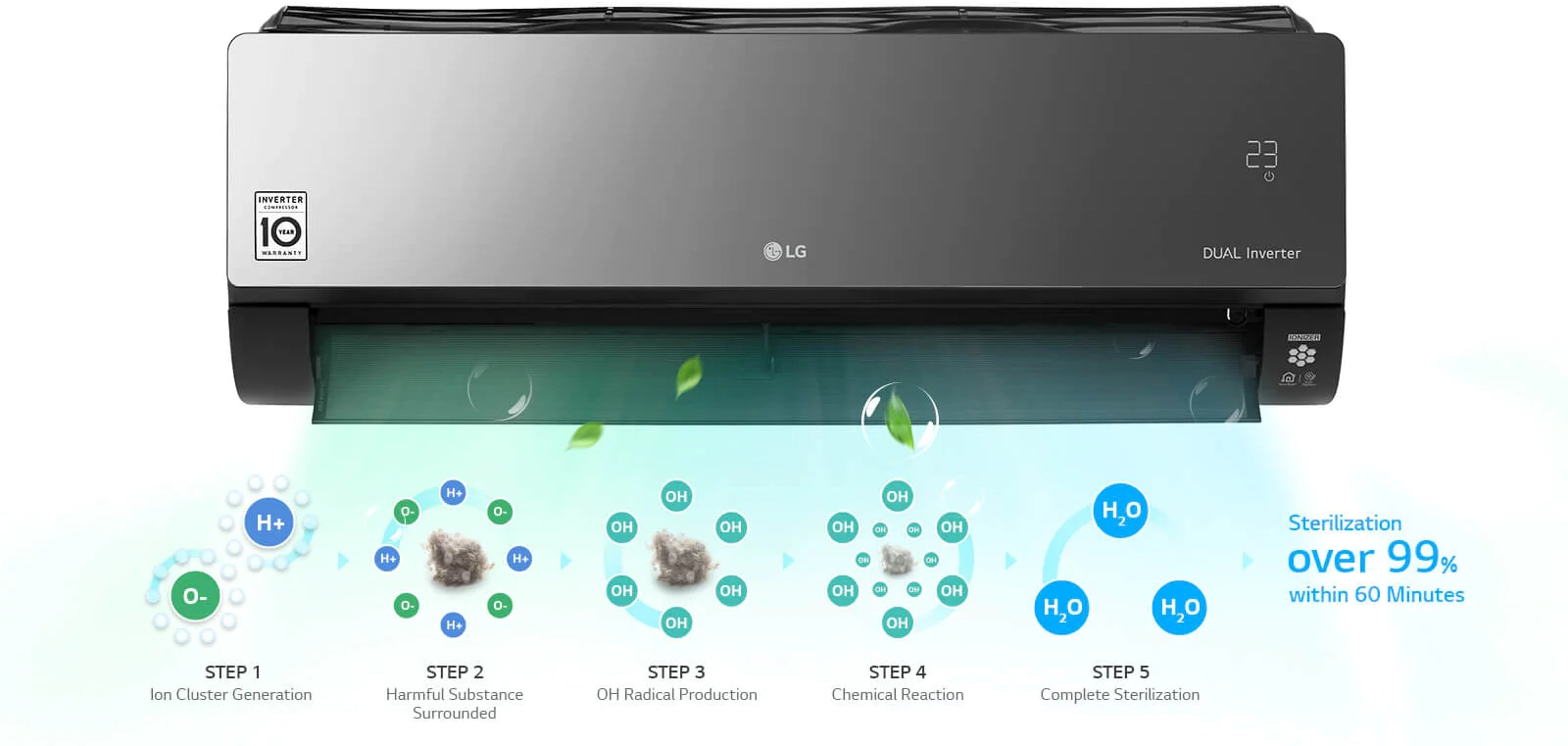 Завдяки DUAL Inverter Compressor™ Ви можете забути про проблеми з високою гучністю роботи, неналежною та неефективною роботою пристрою. Внаслідок цього кондиціонер охолоджує швидше, працює довше та значно тихіше. Ви зможете користуватися перевагами кондиціонера LG протягом більш тривалого періоду часу.