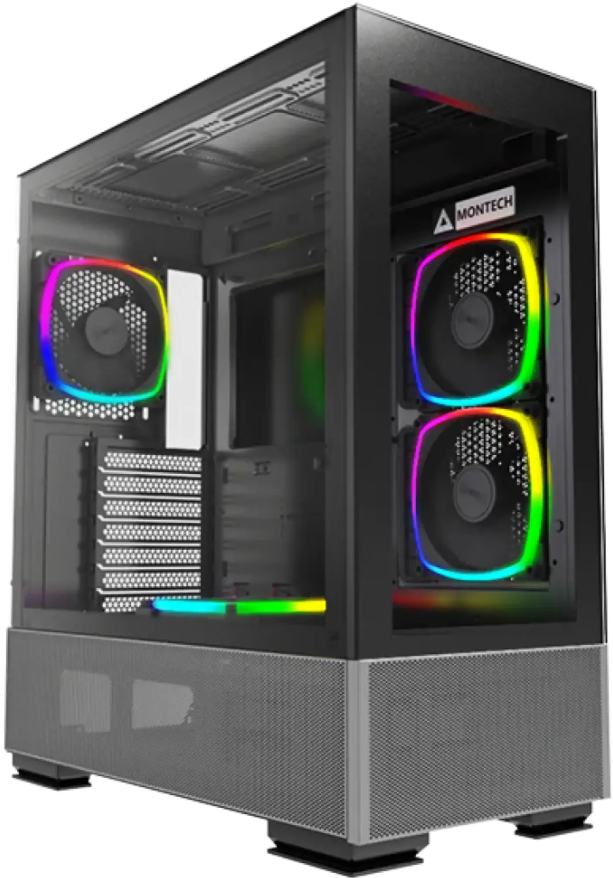 MONTECH SKY TWO допомагає зібрати потужний ПК із комфортною температурою компонентів. Чотири встановлені ARGB-вентилятори формують стабільний повітряний потік: два спереду, один ззаду та один знизу. Така схема підтримує рівномірне охолодження відеокарти та процесора під час ігор і роботи з графікою. Форм-фактор Miditower підходить для плат ATX, microATX і Mini-ITX, тому конфігурацію легко підібрати під власні задачі.
