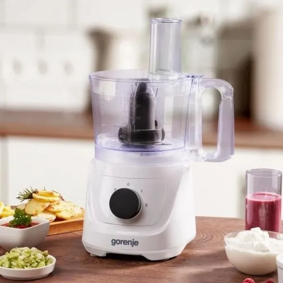 Насадки кухонного комбайна допомагають виконувати численні завдання з приготування їжі, тоді як блендер можна використовувати для приготування корисних фруктових або овочевих напоїв. Чаша блендера об’ємом 1,5 л оснащена ефективним 4-лопатевим ножем. Чаша закривається зручною кришкою з маленьким отвором для подання інгредієнтів під час роботи приладу.