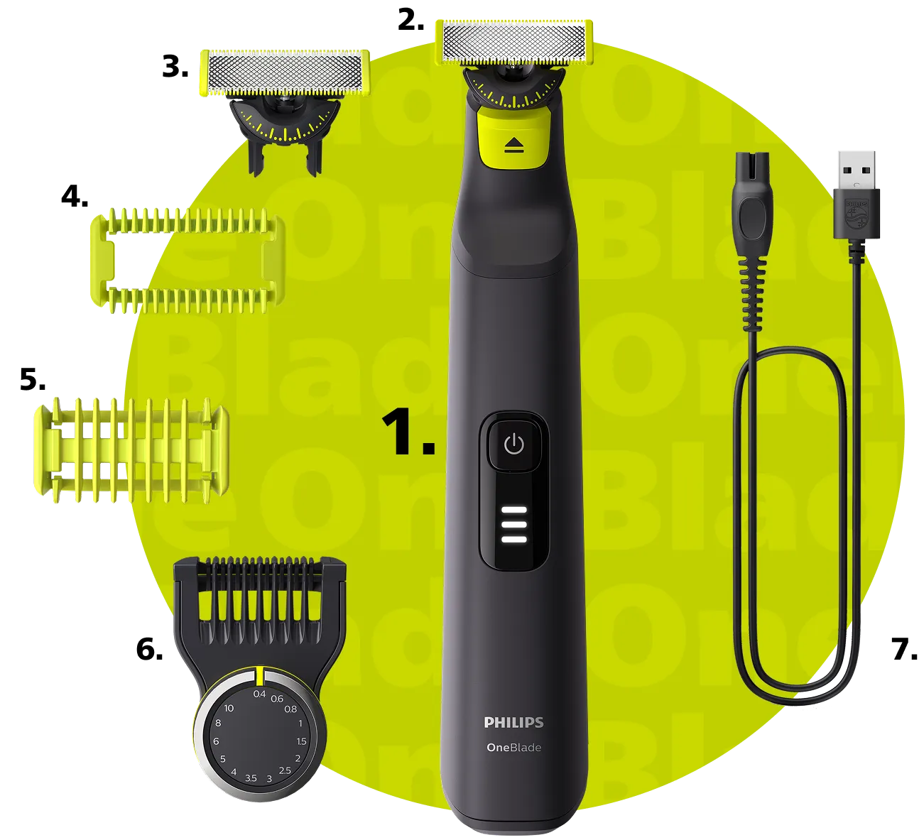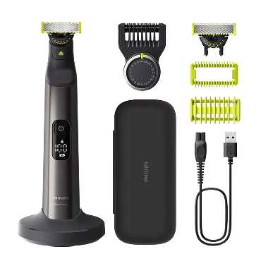 Створений для гоління волосся без порізів та подразнень. Philips OneBlade Pro голить волосся, а не шкіру, забезпечує комфортну процедуру гоління навіть на чутливих ділянках тіла завдяки додатковим насадкам.