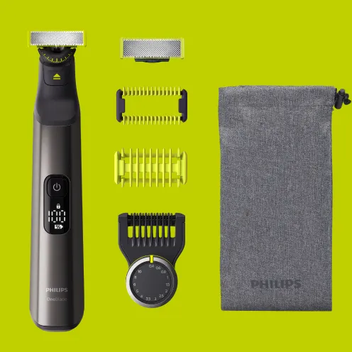 Створений для гоління волосся без порізів та подразнень. Він голить волосся, а не шкіру. Електростанок Philips OneBlade забезпечує комфортну процедуру гоління навіть на чутливих ділянках тіла з додатковими насадками.