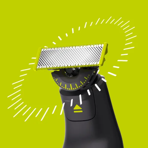 З електростанком Philips OneBlade підрівнюйте бороду та щетину до потрібної довжини за допомогою регульованого точного гребінця із комплекту. Він має 14 налаштувань довжини з фіксацією, щоб створити потрібний стиль – від легкої "вечірньої" щетини до середньої щетини та довшої бороди від 0,4 до 10 мм.