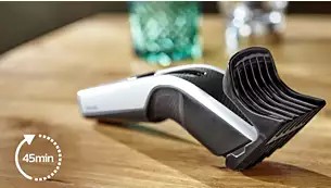 Машинка для стрижки може працювати автономно для максимальної зручності та свободи. Потужний нікель-метал-гідридний акумулятор забезпечує до 45 хвилин автономної роботи після 8 годин заряджання.