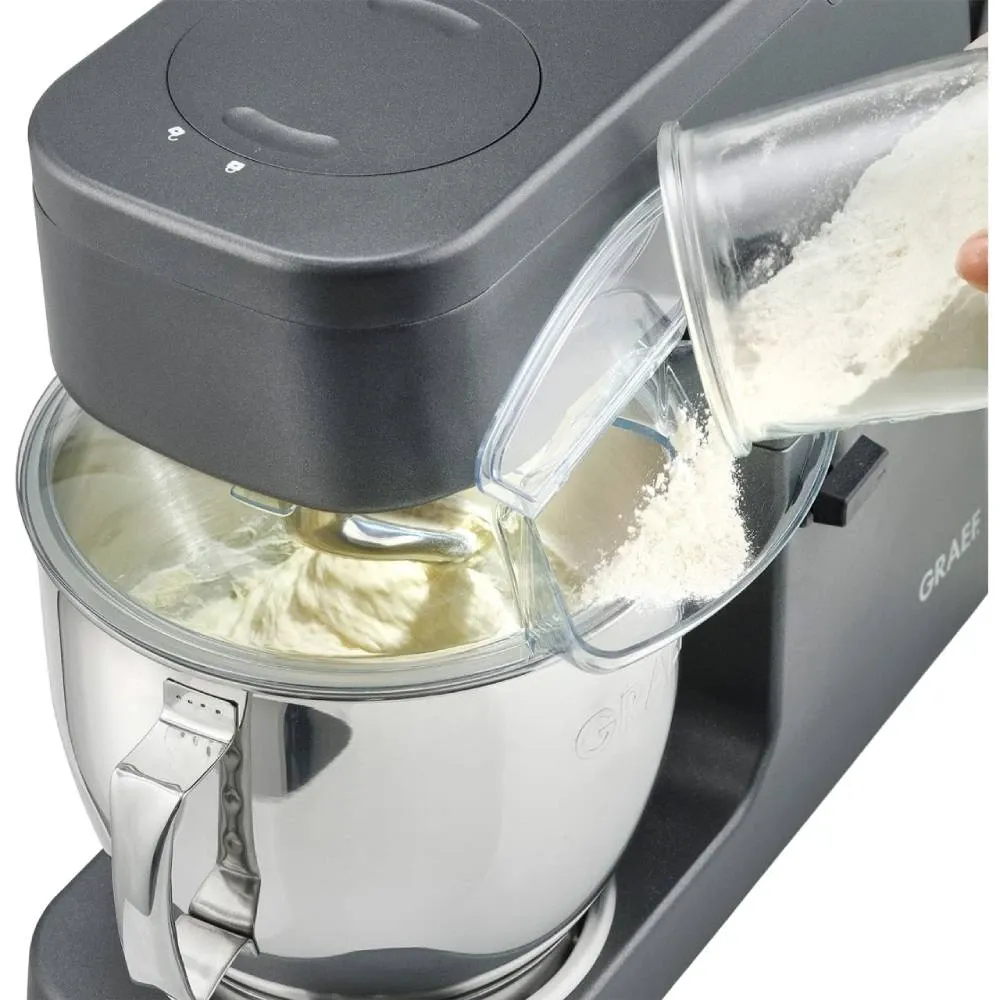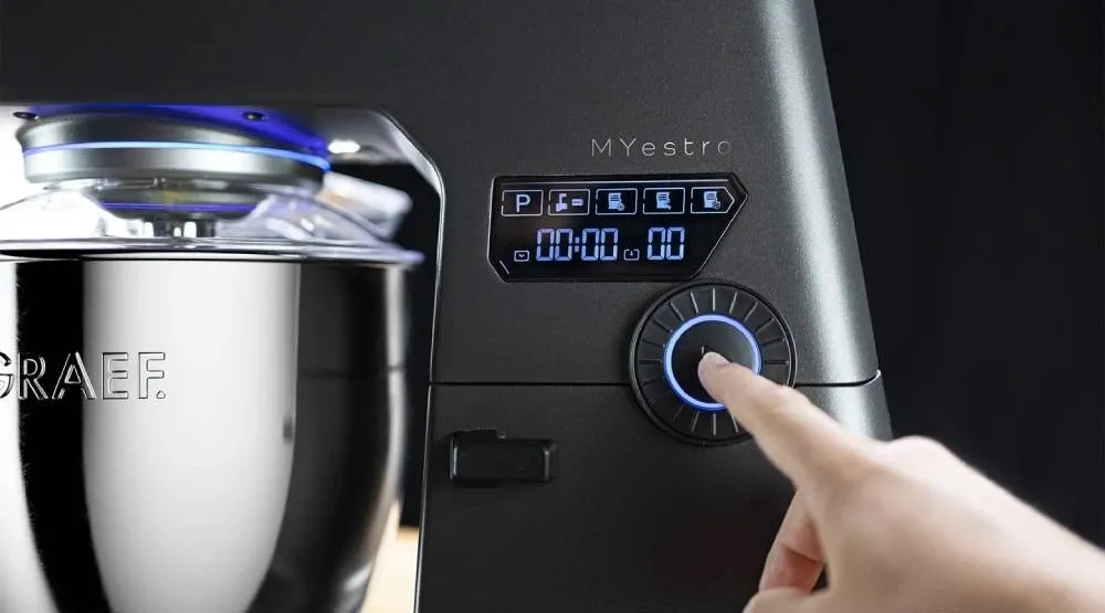 Завдяки повністю збалансованому металевому корпусу міксер GRAEF MYestro також досягає унікальної стійкості завдяки солідній вазі продукту 18 кг, навіть при обробці важкого тіста.