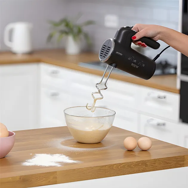 Міксер MPM MMR-23 - це надійний помічник на вашій кухні, що поєднує в собі потужність і функціональність. Цей ручний міксер стане незамінним інструментом для тих, хто цінує якість і ефективність у приготуванні їжі. З потужністю в 900 Вт, MPM MMR-23 легко справляється з будь-якими завданнями, від збивання легких кремів до замішування щільного тіста. У комплекті йдуть насадки вінчик і гаки для тіста, що робить міксер універсальним для різних кулінарних потреб. Шість швидкостей дають змогу підібрати оптимальний режим роботи для кожного виду продуктів, чи то ніжний мус, чи то густе тісто для хліба.