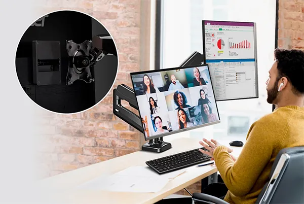 Aspire C з ергономічним і мінімалістським дизайном забезпечує виняткову економію місця та можливості впорядкування кабелів – він сумісний із VESA, його можна легко монтувати на стіні, щоб використати простір на максимум без відволікаючих чинників.