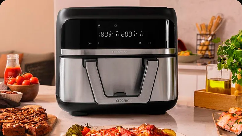 CECOTEC Cecofry Dual 9000 — це одночасно гриль, духова піч і мікрохвильовка. От тільки ви додаєте мінімум олії та отримуєте більш дієтичні страви. Завдяки потужності 2850 Вт приготування займає менше часу. Не обов’язково відмовлятись від улюблених нагетсів чи хрусткої картоплі фрі. Приготовані в мультипечі, вони будуть такими ж соковитими та менш калорійними.
