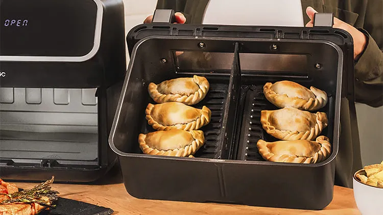 Завдяки двом окремим контейнерам для приготування по 4,5 л Ви запросто можете приготувати кілька різних страв одночасно, не змішуючи смаки та запахи. А завдяки функції синхронізації ви будете впевнені, що ваші страви будуть приготовані одночасно і правильно.