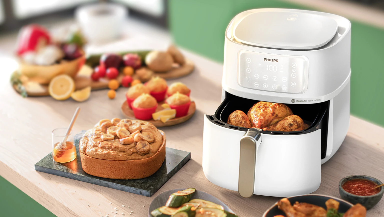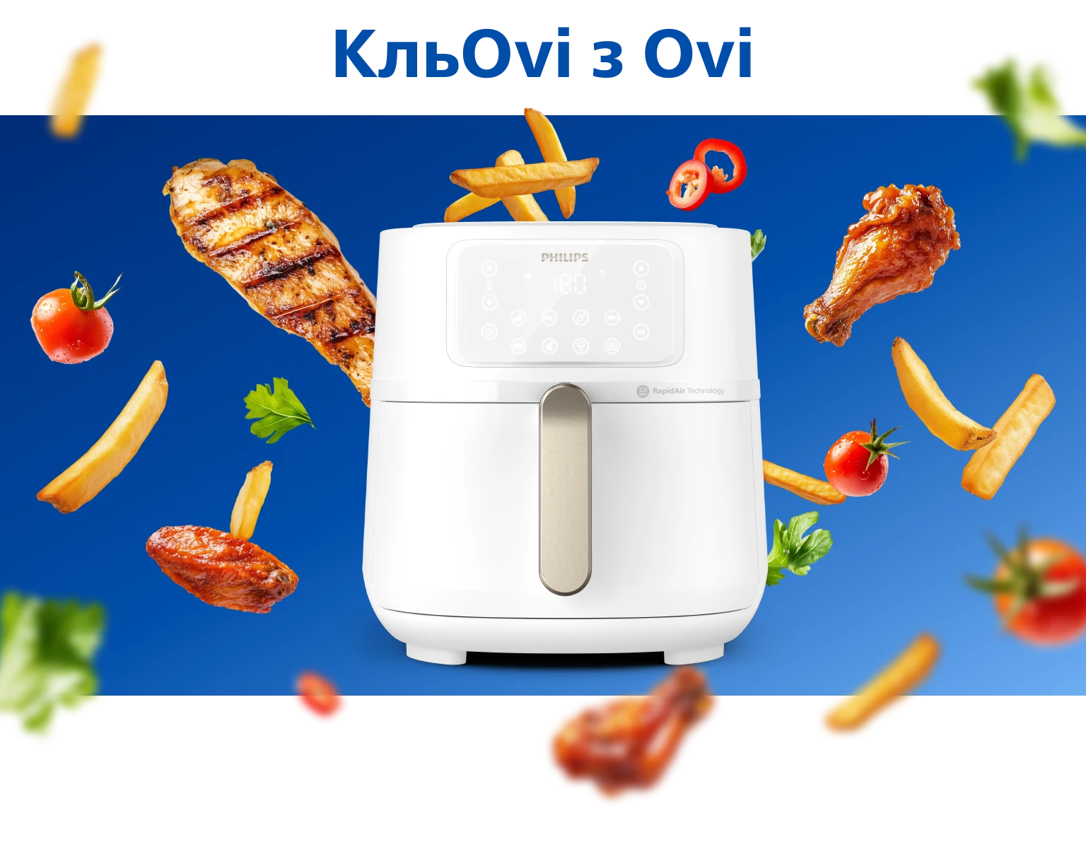 Технологія RapidAir з унікальним запатентованим дизайном «starfish» (морська зірка) забезпечує швидку циркуляцію гарячого повітря для приготування смачної їжі, хрусткої зверху та ніжної усередині, практично без олії