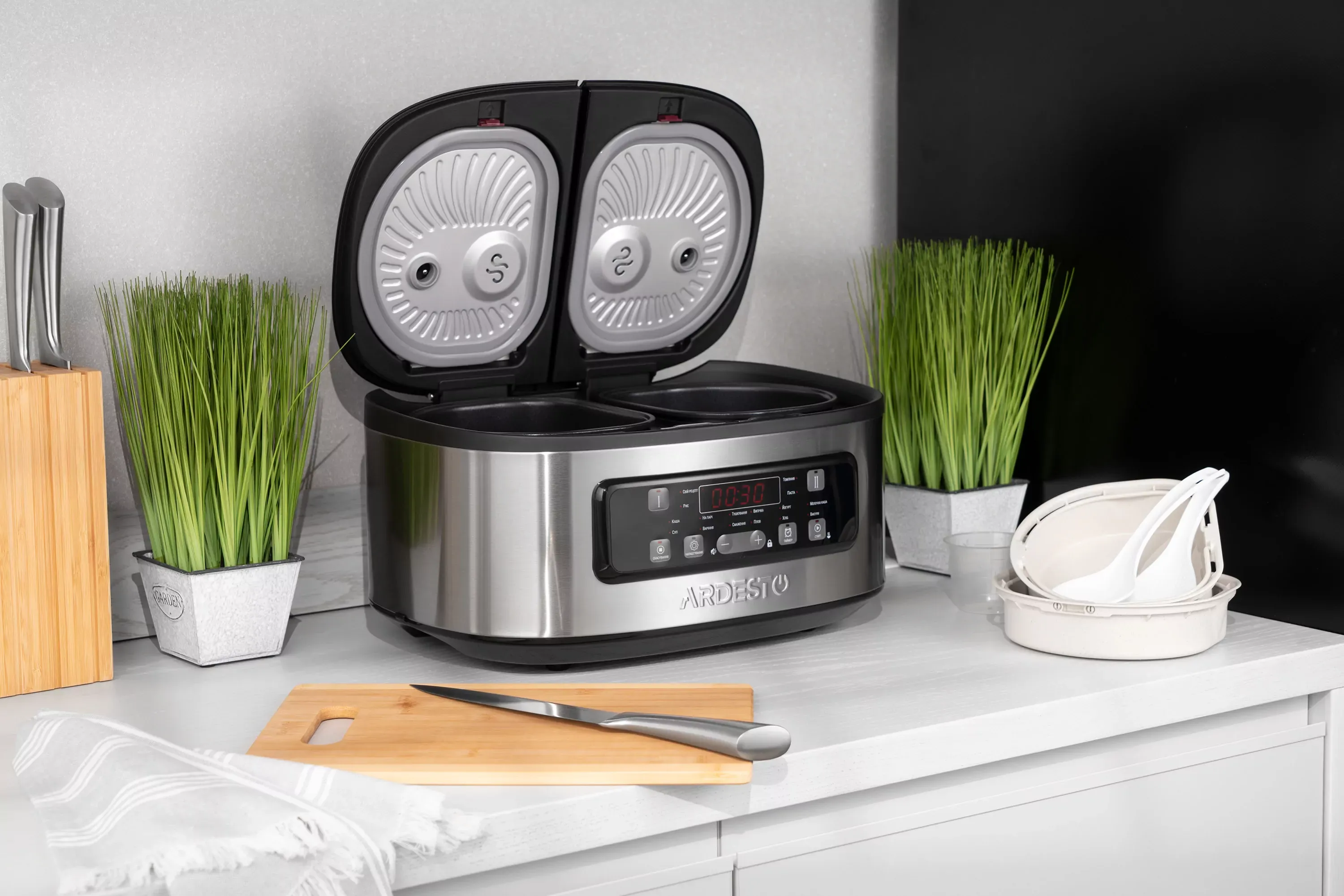 ARDESTO DMC-SA1212SB є багатофункціональною помічницею. Її оснащено спеціальною технологією і до снаги готувати від 2 до 4 (використовуючи контейнери для приготування на парі) страв одночасно. Беззаперечним плюсом є те, що за приготуванням не потрібно стежити – достатньо вибрати одну з 16 програм і можна піти на прогулянку з дитиною, на роботу чи відпочити. Рідина в ній не википить, а м’ясо не пересмажиться. Для кожної чаші можна вибрати індивідуальні налаштування приготування. Крім іншого, чаші мають незалежні ТЕНи.