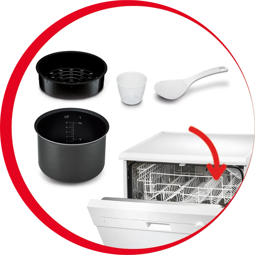 Аксесуари і чашу можна мити як вручну так і в посудомийній машині, що значно полегшує догляд за пристороєм.