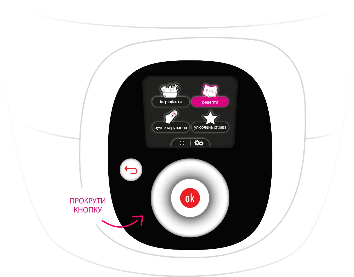РК дисплей; Книга рецептів вбудована у програмне забезпечення; ручки на знімній чаші; Завантаження рецептів через Bluetooth; Таймер: до 24 год