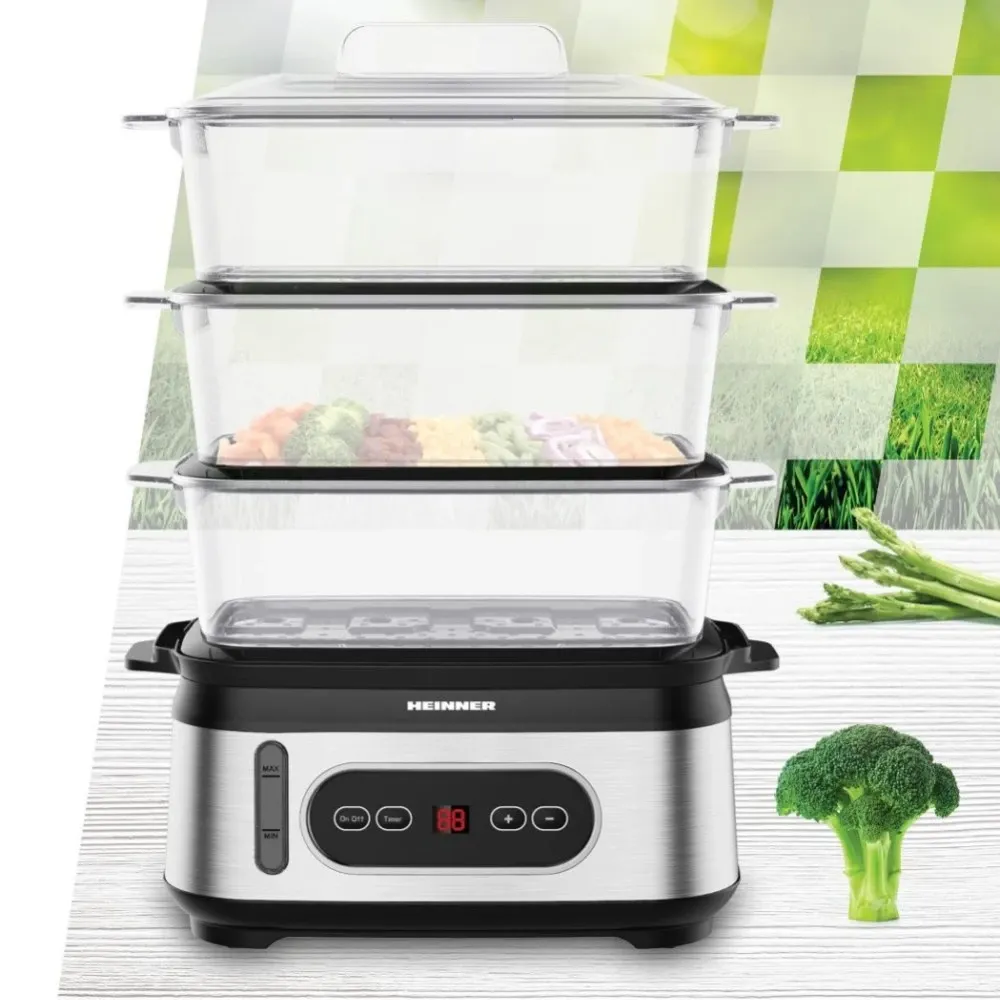 Цей прилад стане чудовим доповненням до будь-якої кухні, забезпечуючи зручність і безпеку в повсякденному використанні. З його допомогою приготування здорових і смачних страв стане простим і приємним заняттям. Вибираючи пароварку HEINNER HSA-D950SS, ви робите крок назустріч здоровому способу життя та економії часу на приготування їжі. Цей прилад стане вашим надійним помічником на кухні, даючи змогу тішити близьких стравами, приготованими на пару, зберігаючи їхній смак і користь.