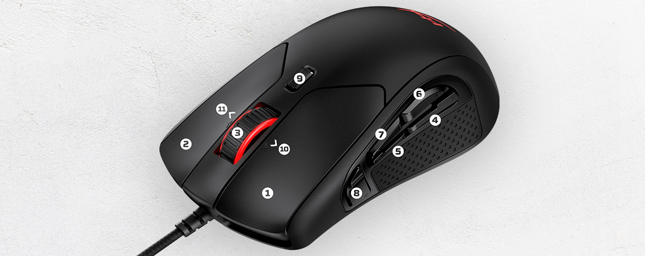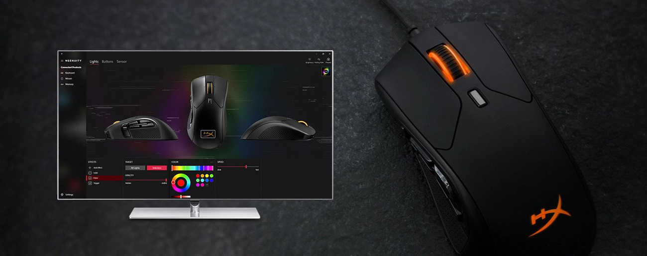 Налаштовуй під себе RGB-підсвічування, програмуй макроси для кожної з 11 кнопок, встановлюй дозвіл і зберігай налаштування у вбудованій пам'яті миші Pulsefire Raid за допомогою ПЗ HyperX NGENUITY.