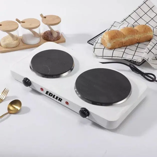 Готуйте улюблені страви будь-де з портативною електричною плитою Edler EDJB-2011. Ця компактна плита із двома конфорками різної потужності ідеально підходить для малогабаритних кухонь, дач чи подорожей. Вона пропонує 5 рівнів потужності для точного контролю температури, а міцні чавунні диски забезпечують рівномірний розподіл тепла та довговічність. Разом із системою захисту від перегріву, індикаторами вмикання для кожної конфорки та прогумованими ніжками, це робить Edler EDJB-2011 зручною, безпечною та надійною у використанні. Прекрасний варіант для всіх, кому потрібна додаткова портативна плита чи немає місця для повноцінної.