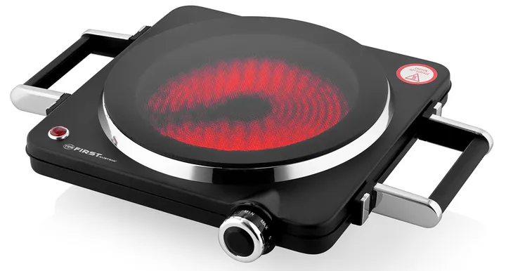 Настільна плита FIRST FA-5096-5 з високоміцною склокерамічною варильною поверхнею призначена для використання практично з будь-яким посудом з плоским дном. Модель оснащена однією конфоркою потужністю 1500 Вт та діаметром 22 см, що забезпечує ефективне приготування різних страв. Управління здійснюється за допомогою поворотних перемикачів, що забезпечує простоту та зручність у використанні. Матеріал корпусу виконаний з металу, що надає плиті міцності та довговічності. Температура варильного поверхні досягає близько 400 ° C, забезпечуючи швидкий і рівномірний процес приготування. Робоча поверхня виготовлена з високоміцного кристаллітового скла, що робить її стійкою до пошкоджень та легкою у догляді. Плита оснащена світловим індикатором, який сигналізує про її увімкнення. Регулятор температури дозволяє точно контролювати процес приготування. Тип нагрівальних елементів - Hi-Light, що забезпечують швидке та ефективне нагрівання. Для зручності переміщення плити на ній є хромовані ручки.