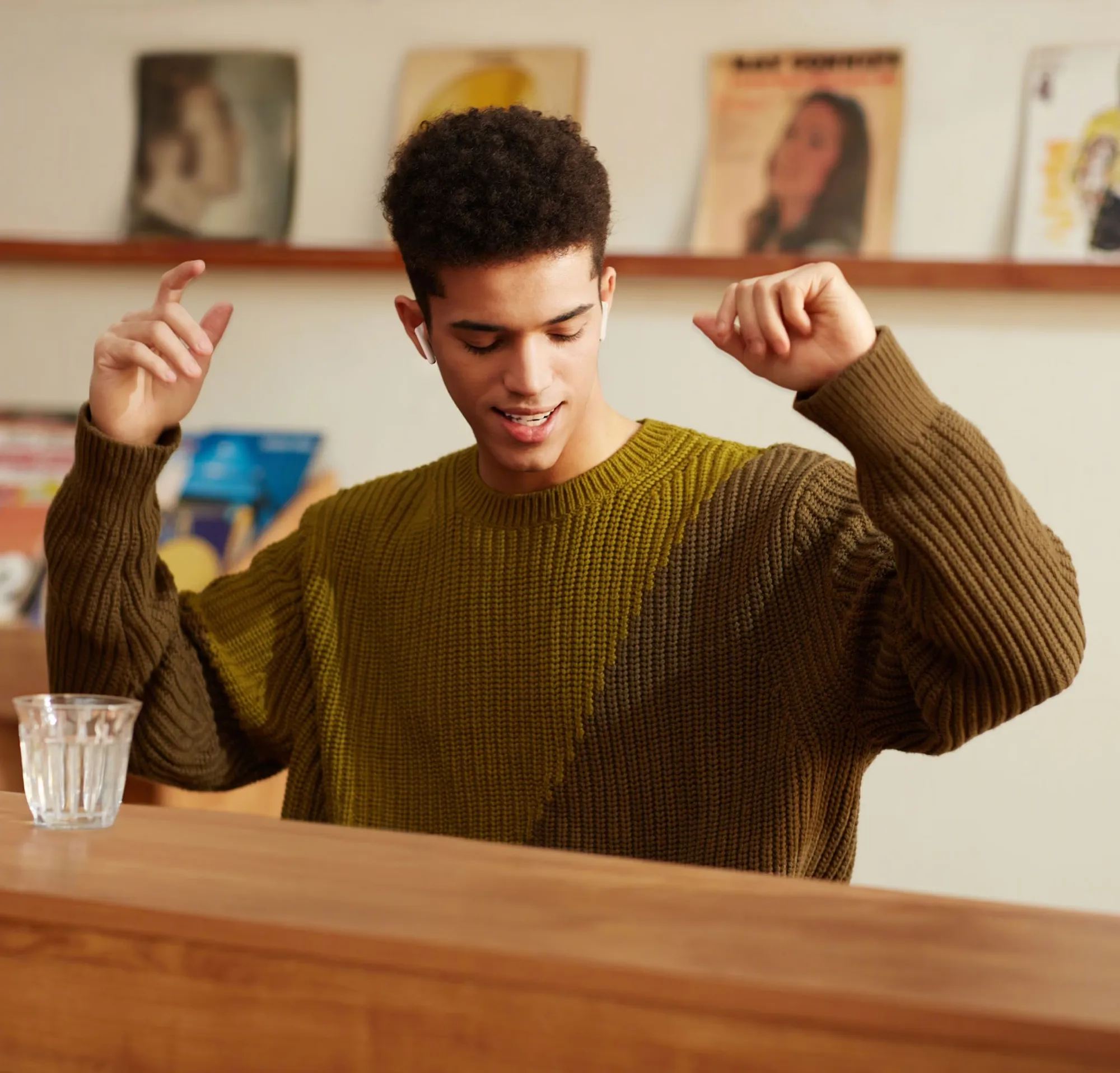 Навушники підтримують останній стандарт Bluetooth®, який забезпечує бінауральну передачу з низькою затримкою, зменшуючи затримку до 47 мс⁶ для швидкого та плавного підключення, незалежно від того, чи ви слухаєте музику, чи граєте в ігри.