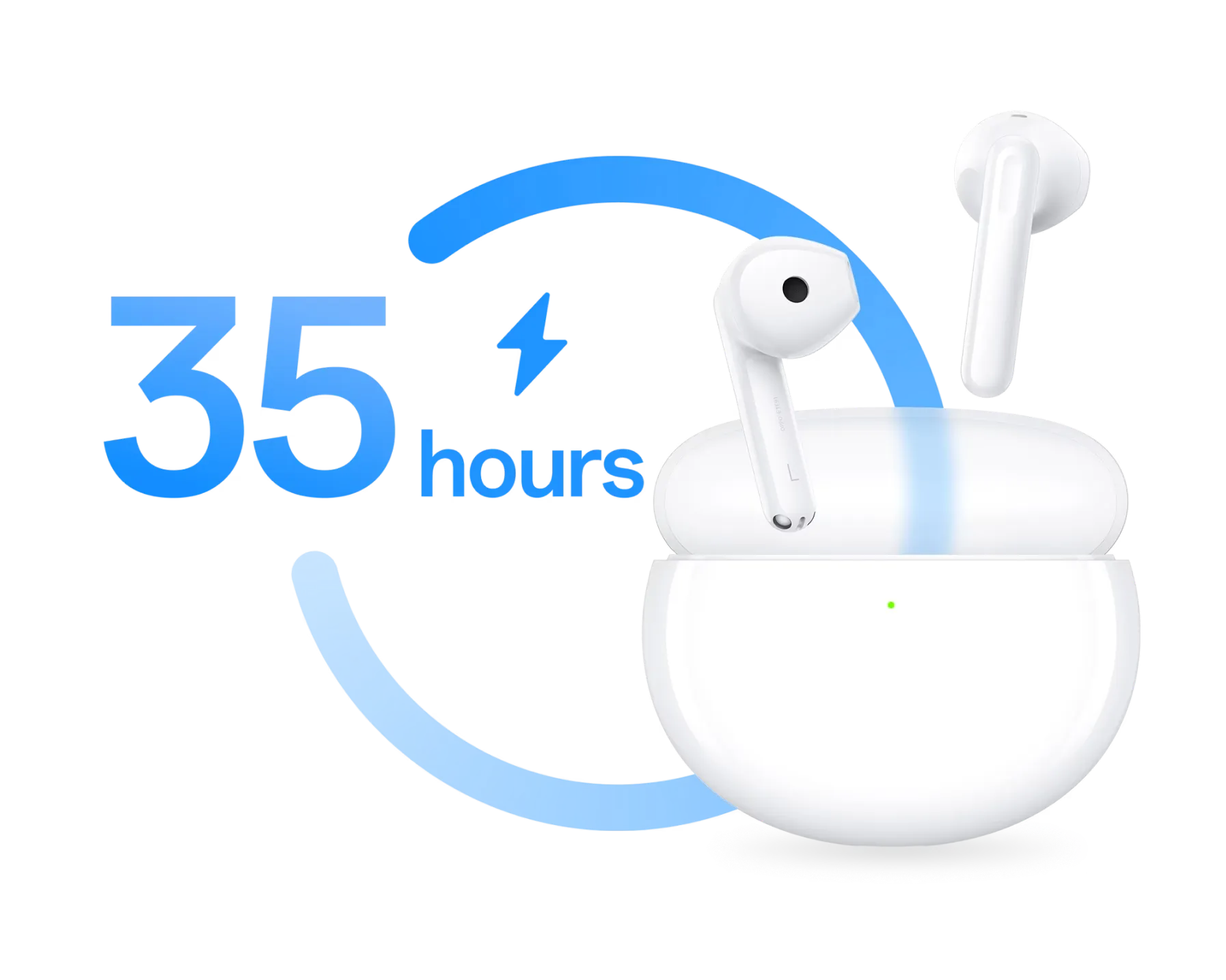 Збільшення тривалості роботи батареї на 40% означає, що ви отримуєте до 35 годин прослуховування із зарядним кейсом. Ніколи не вимикайте музику.