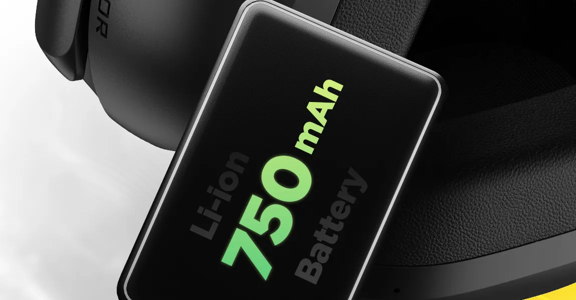 Інноваційний літій-іонний акумулятор з низьким рівнем деградації, ємністю 750 мАг, забезпечує автономність гарнітури протягом 45 годин.