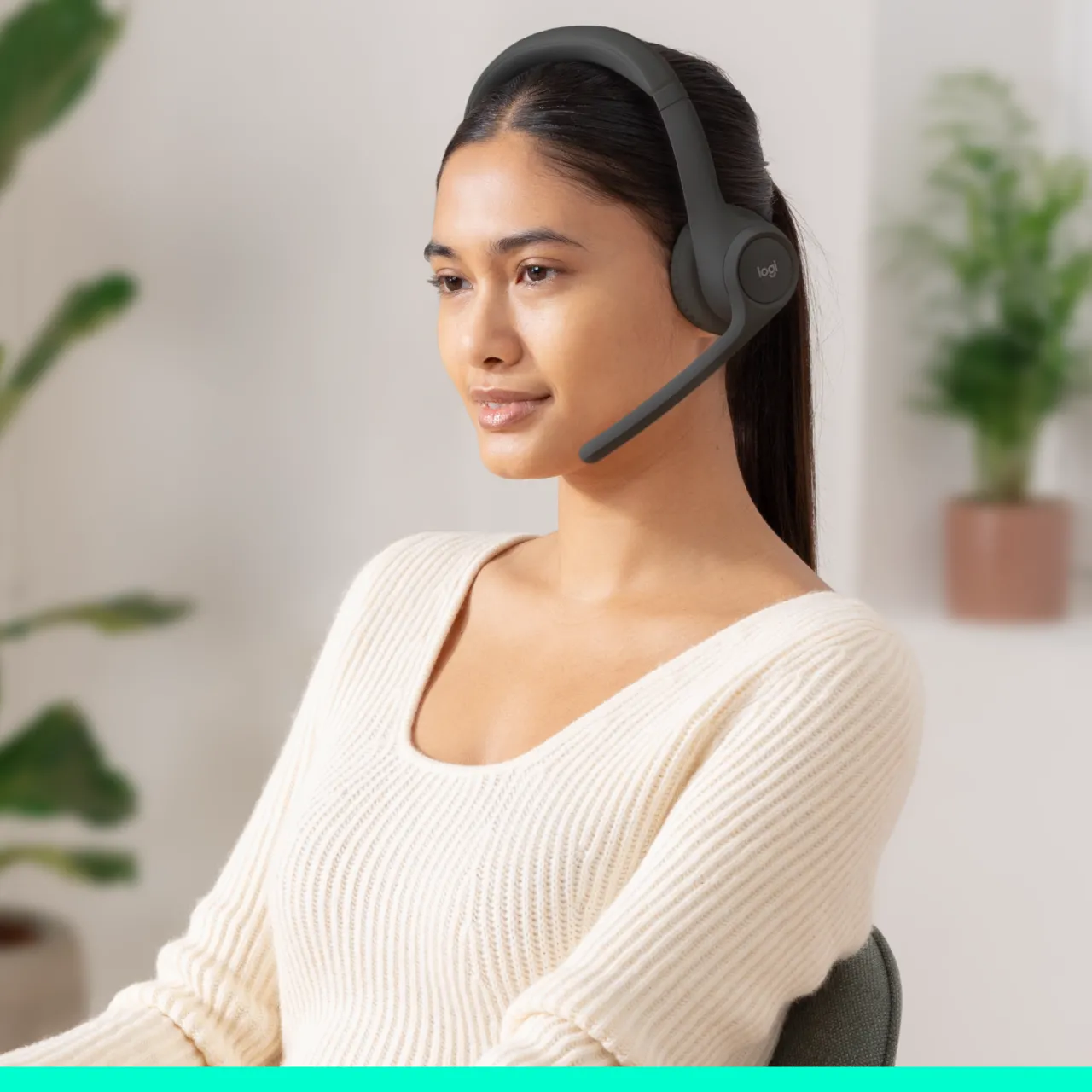 Бездротова гарнітура Logitech Zone 300 Bluetooth сертифікована як вуглецево-нейтральний продукт та містить вживаний пластик (чорна: 55%, біла та рожева: 42%).