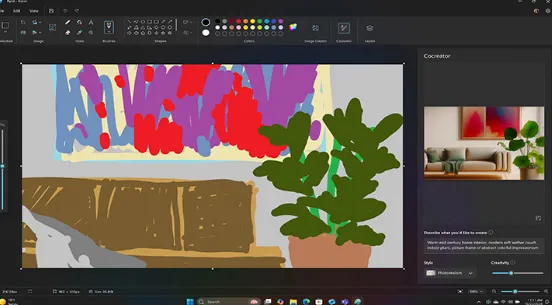 Кожна людина має уяву й здатність бути художником. Опишіть або намалюйте своє бачення за допомогою текстових або графічних підказок і спостерігайте, як Cocreator створює його інтерпретацію.