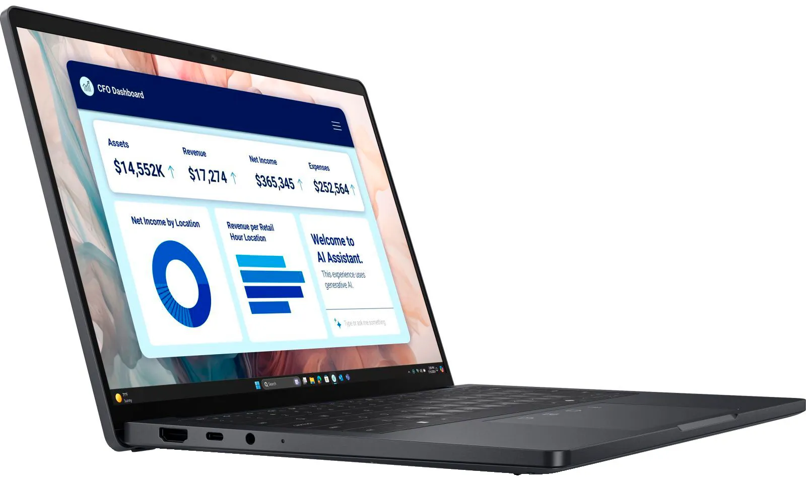 Ваші ідеї заслуговують на кращий екран. Просторий, як для такого невеликого ноутбука, 13,3-дюймовий дисплей Dell Pro 13 Premium може похвалитися високою роздільною здатністю QHD+ і передає кольори з бездоганною точністю завдяки 100% охопленню колірного простору sRGB.