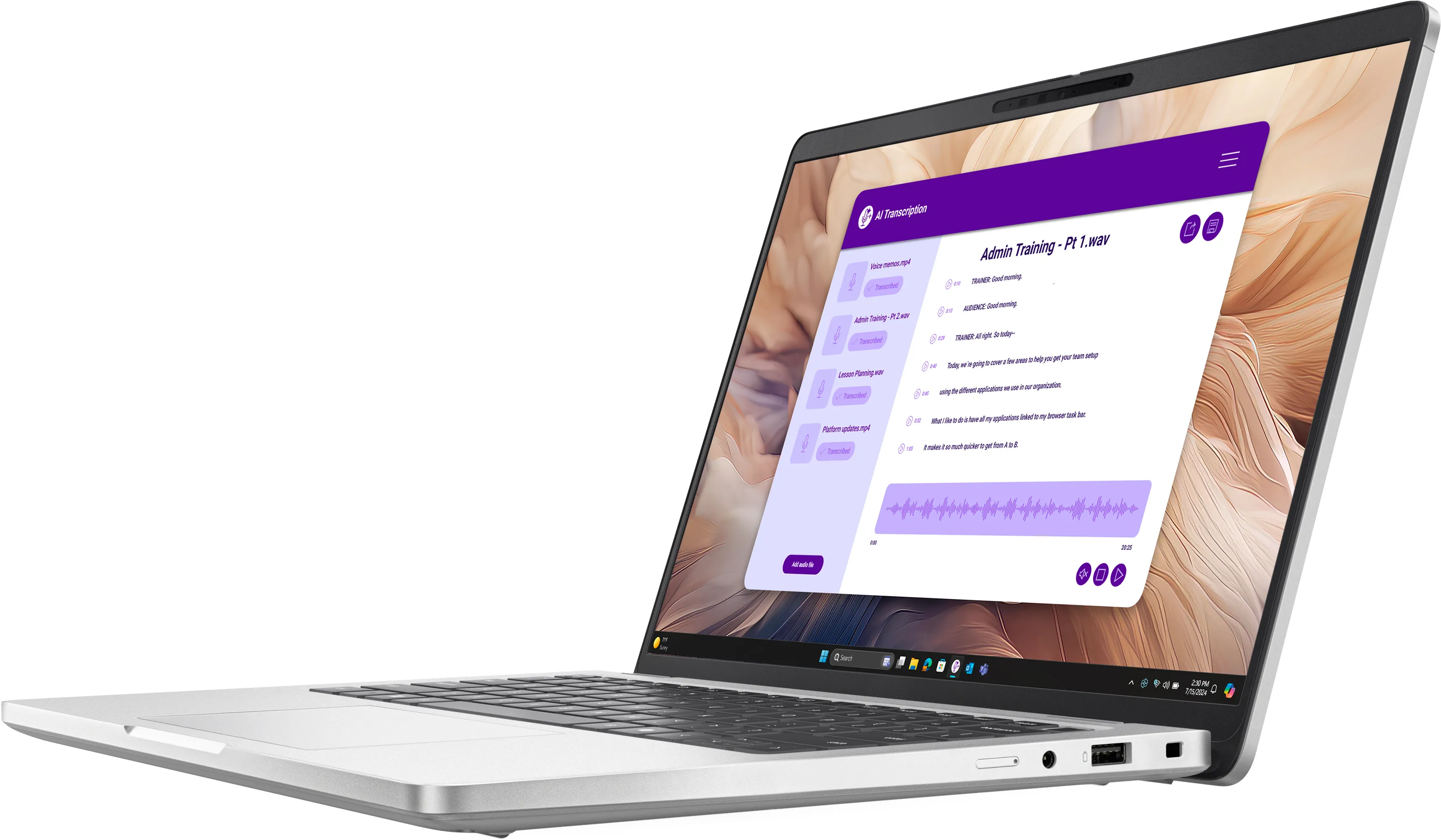 Розкрийте свої можливості на максимум за допомогою потужного процесора Intel® Core™ Ultra, що підтримує роботу ШІ прямо на пристрої. Вбудований нейропроцесор допомагає прискорити виконання завдань на кшталт шумозаглушення, генерації транскрипцій та інтелектуальних рекомендацій.