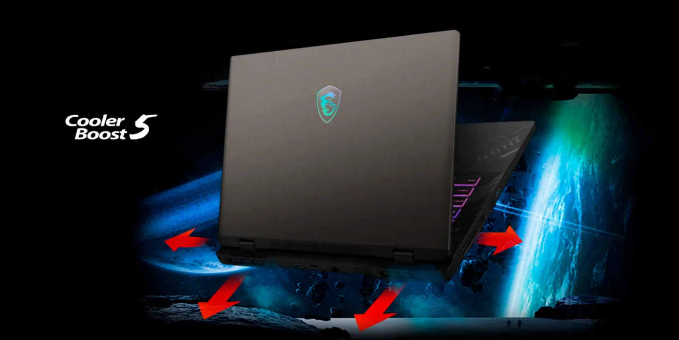 Інноваційна система охолодження з багатоспрямованими повітряними потоками гарантує неперевершену ефективність! Унікальна конструкція з п'ятьма тепловими трубками, що з'єднують процесор і відеокарту, збільшені діаметри трубок і фірмова термопаста MSI забезпечують стабільну роботу навіть у найінтенсивніших ігрових сесіях.