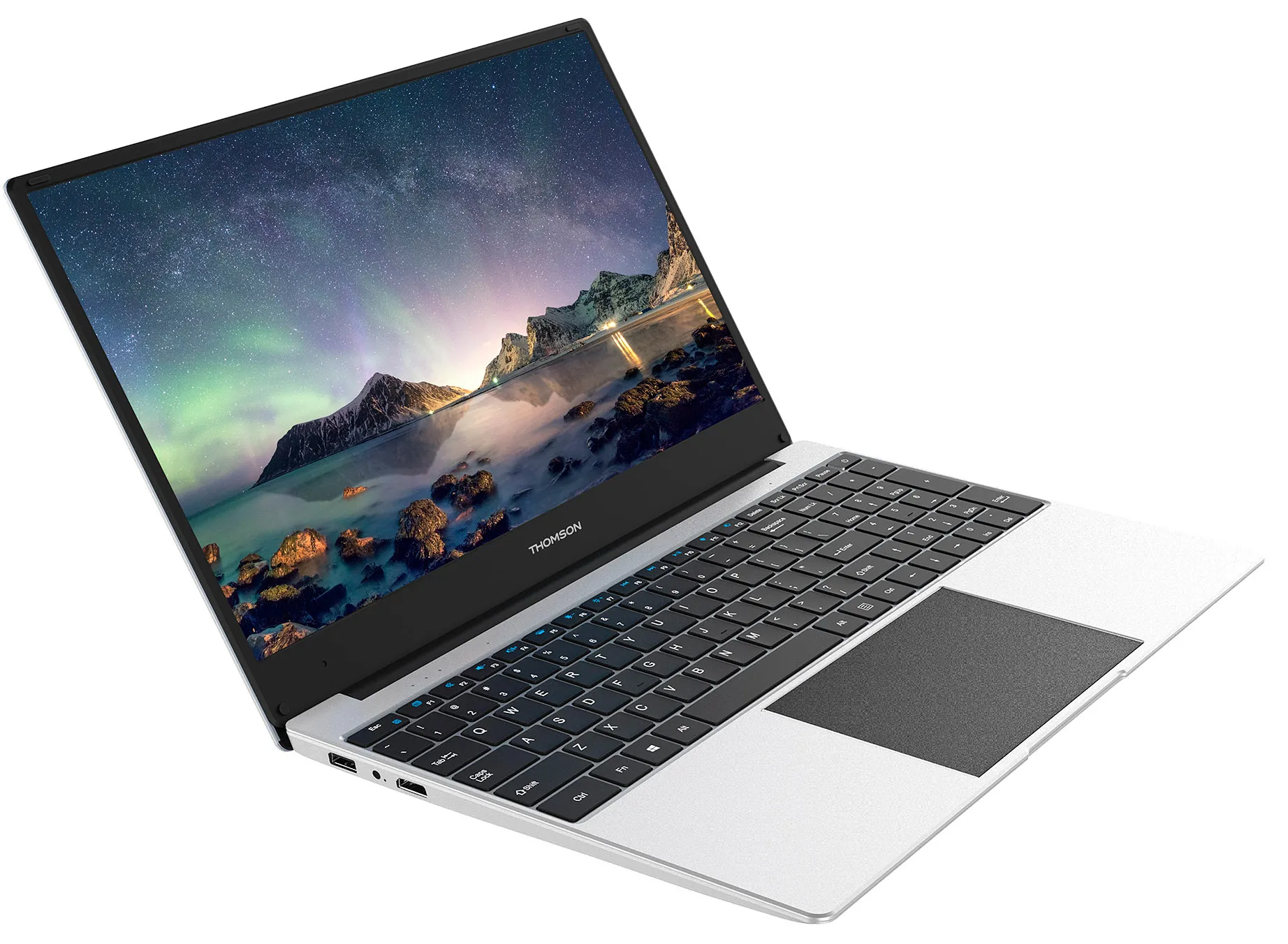 Thomson Neo N15 – простий та стильний ноутбук, який ідеально вписується у повсякденне життя. Його функції задовольняють потреби як у розвагах, так і в продуктивній роботі, що робить цей лептоп цінним інструментом для школярів, студентів та практичним помічником у щоденній діяльності. Просторий 15-дюймовий дисплей HD з тонкими рамками дає достатньо місця для роботи з різними програмами і демонструє якісну картинку. Продуктивний процесор Intel та швидкий SSD допомагають скоріше справлятися з поставленими завданнями, а завдяки Wi-Fi 5 і цілому ряду портів ви можете залишатися на зв'язку та займатися своїми справами будь-де. Практичне рішення для всіх, кому потрібен недорогий, але багатофункціональний ноутбук на кожен день.
