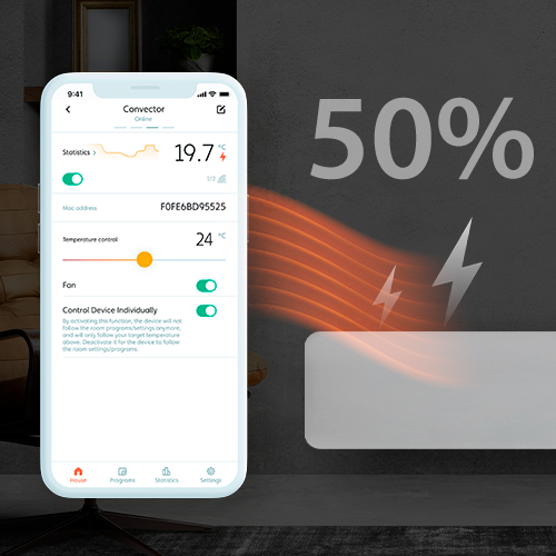 Обігрівач Mill ефективно використовує потужність 1200W, не витрачаючи зайві гроші та тепло. Економія енергії та коштів до 50% за весь опалювальний сезон.