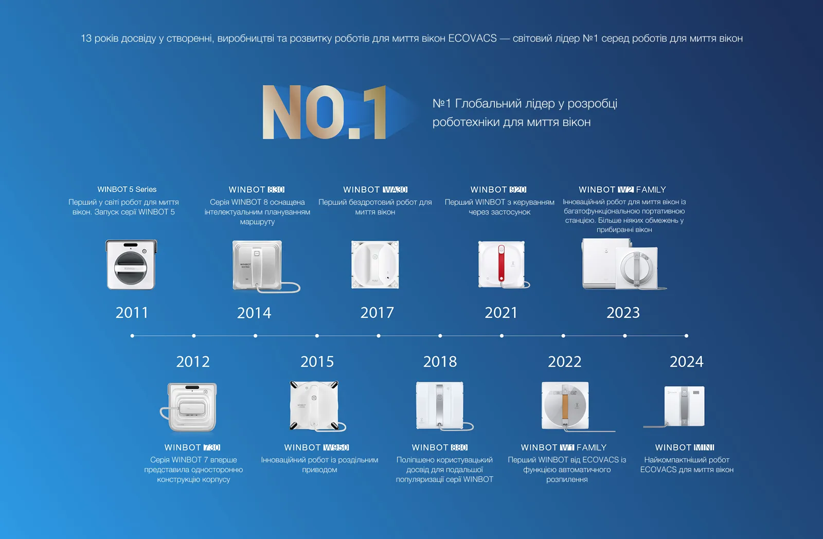 WINBOT MINI — найкомпактніший робот для миття вікон ECOVACS. WINBOT MINI може похвалитися зменшеною на 30% товщиною і на 37% меншим розміром, порівняно зі своїм попередником. Компанія ECOVACS досягла цього інженерного досягнення завдяки високоінтегрованій внутрішній структурі, яка оптимізує кожен сантиметр простору, безбамперна конструкція зменшила розмір корпусу на 28 мм, оптимізовані подвійні повітроводи — товщину на 3 мм, а абсолютно новий компактний вентилятор сприяє зменшенню розміру і маси конструкції. Завдяки довжині однієї сторони всього 215 мм і товщині 55 мм, WINBOT MINI ідеально підходить для очищення вузьких вікон і складних для доступу місць