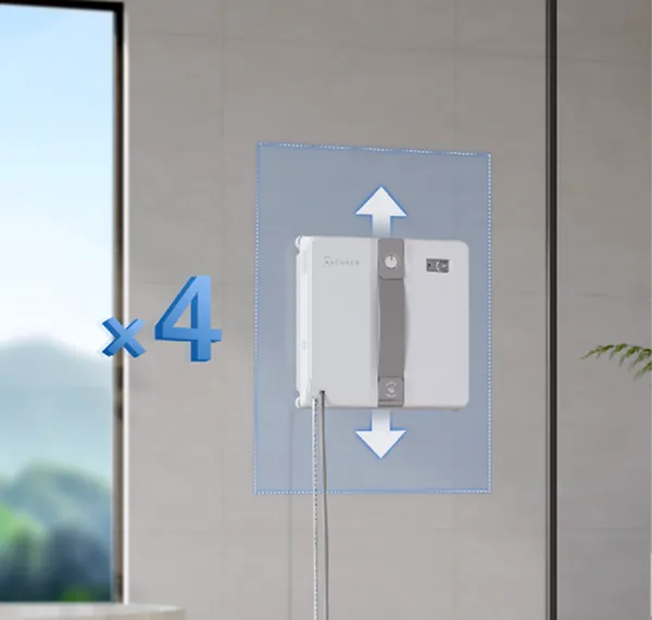 WINBOT MINI дає користувачам можливість контролювати процес завдяки трьом індивідуальним режимам миття. Режим швидкого миття ефективно очищає злегка забруднені вікна, режим ретельного прибирання справляється з брудними вікнами, а режим точкового миття націлений на конкретні ділянки з точним миттям, що ідеально підходить для боротьби зі стійкими плямами або пташиним послідом. Він дозволяє направляти робота для миття вікон у 4 сторони - для ретельного та точного очищення складних або забруднених ділянок, які потребують додаткової уваги. Ви можете без зусиль отримати блискучі вікна, незалежно від складності завдання