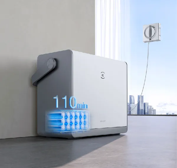 Внутрішня літієва батарея великої ємності забезпечує безперервне живлення WINBOT W2 PRO OMNI, що дозволяє мити вікна там, де немає доступу до електричних розеток. Підходить для будь-яких сценаріїв миття – від очищення внутрішніх вікон до зовнішніх скляних поверхонь. Літієва батарея забезпечує до 110 хвилин безперервної роботи – цього достатньо, щоб очистити до 55 м² скляної поверхні без розетки.