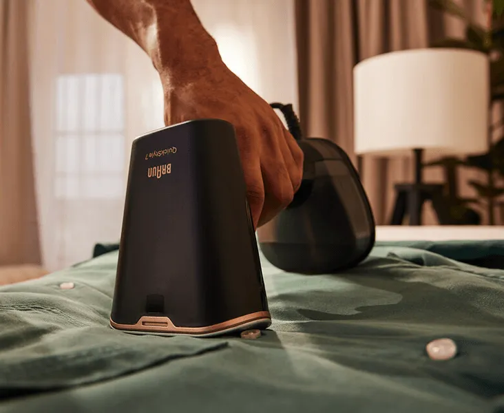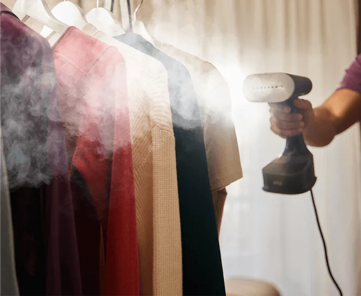 Швидке розгладжування пом’ятостей – горизонтально чи вертикально. Просто відпарте одяг, який висить вертикально, або прасуйте горизонтально на ліжку, щоб виглядти бездоганно.