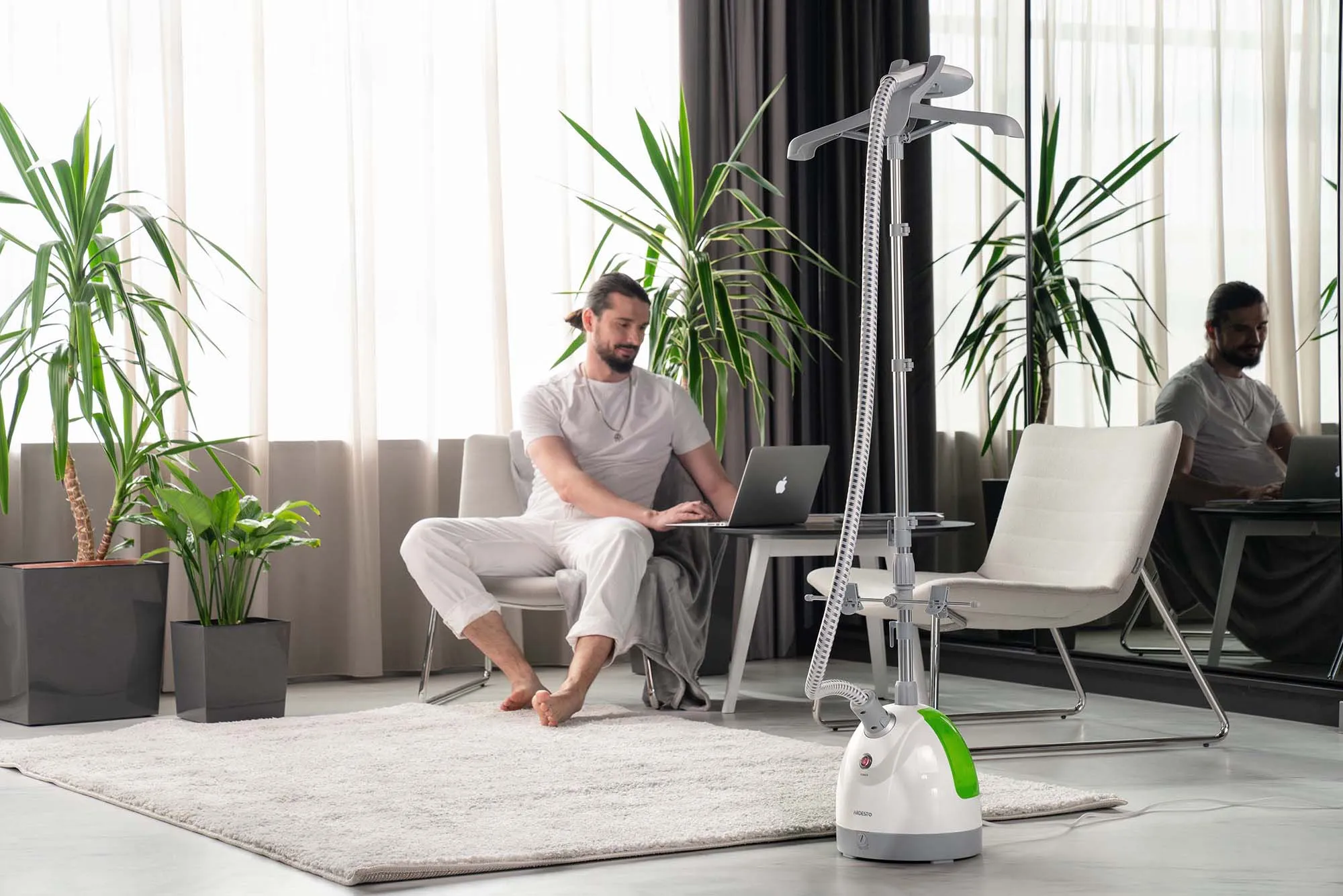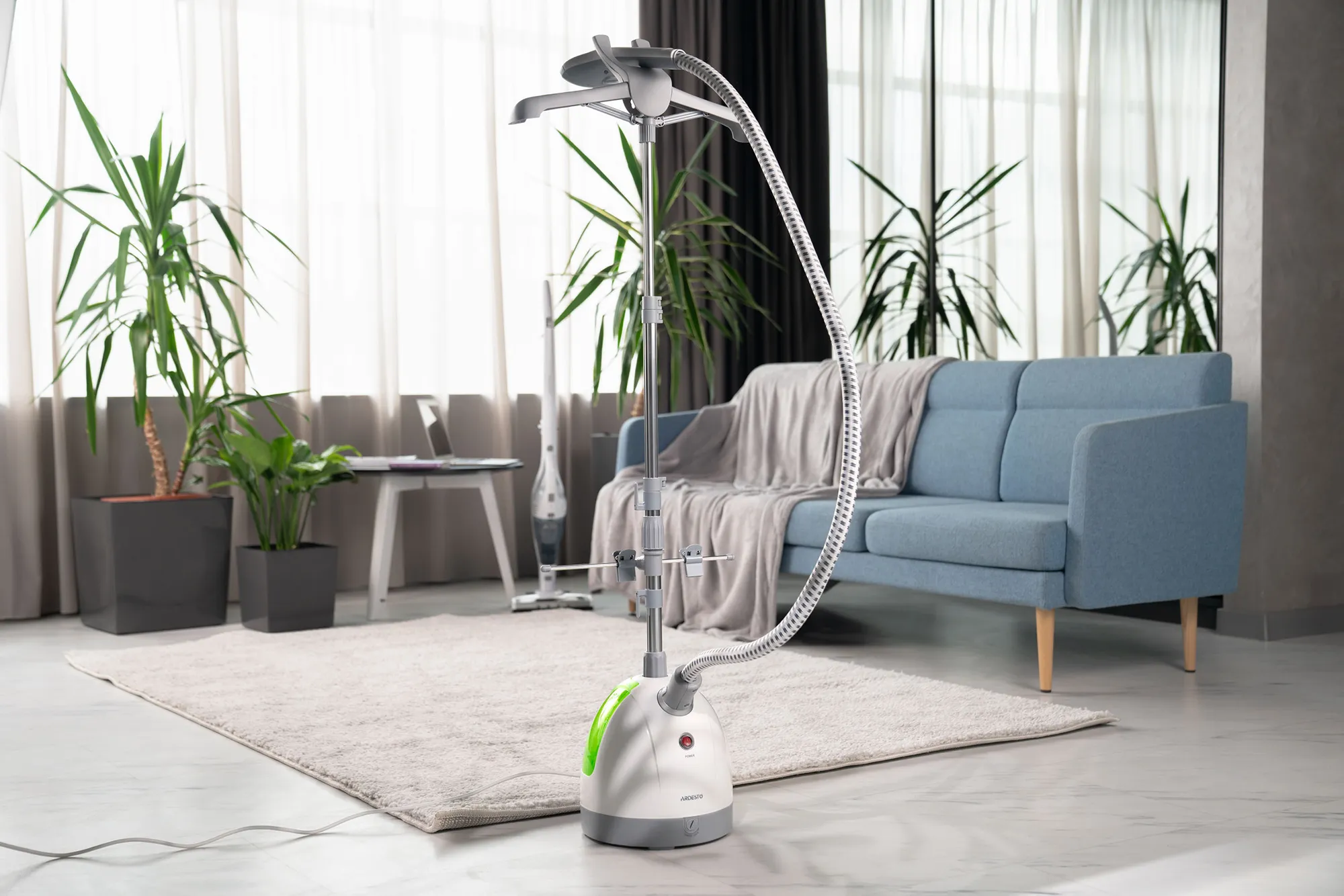 Відпарювач ARDESTO виконаний у елегантному білому кольорі, своєрідний акцент – зеленуватий резервуар для води. Об’єм ємності становить 1 500 мл, тож не потрібно після прасування кожної речі доливати воду – економія часу й зусиль. Потужність моделі складає 1 785 Вт. Постійна подача пари – 30 г/хв. Зручність і свободу рухів забезпечує шланг завдовжки 1,6 м.