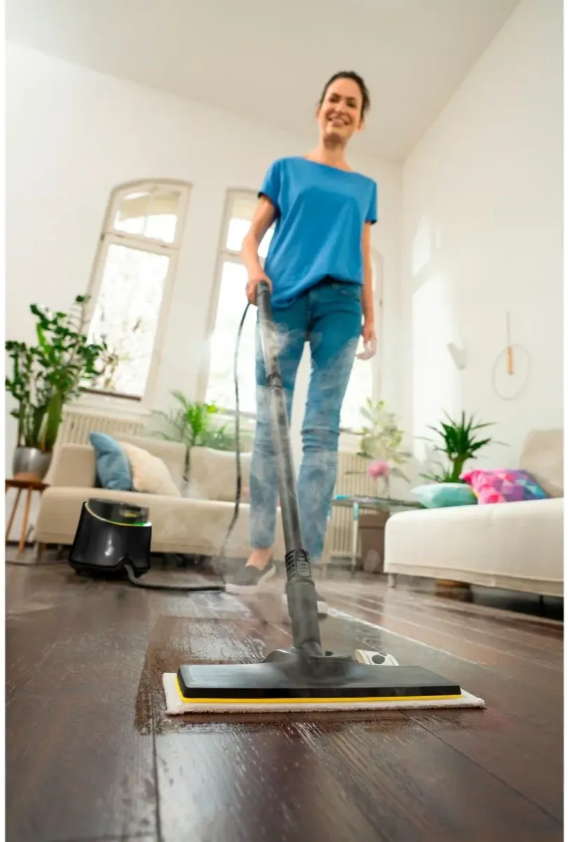 Вбудований відсік для зберігання аксесуарів, кабелю та шланга забезпечує порядок і компактність. Світлодіодний індикатор на корпусі відображає режими роботи та стан пристрою для зручності користувача. Дворівневе регулювання подачі пари дозволяє адаптувати інтенсивність очищення під тип поверхні та ступінь забруднення. Це забезпечує ефективне та дбайливе прибирання в будь-яких умовах.