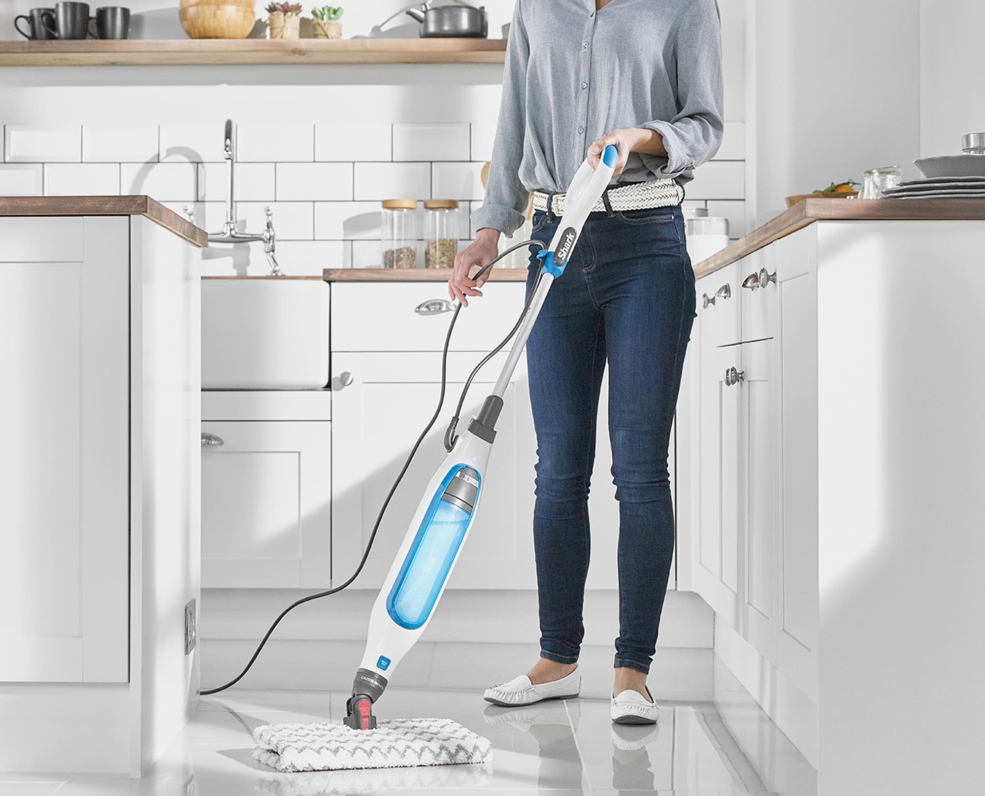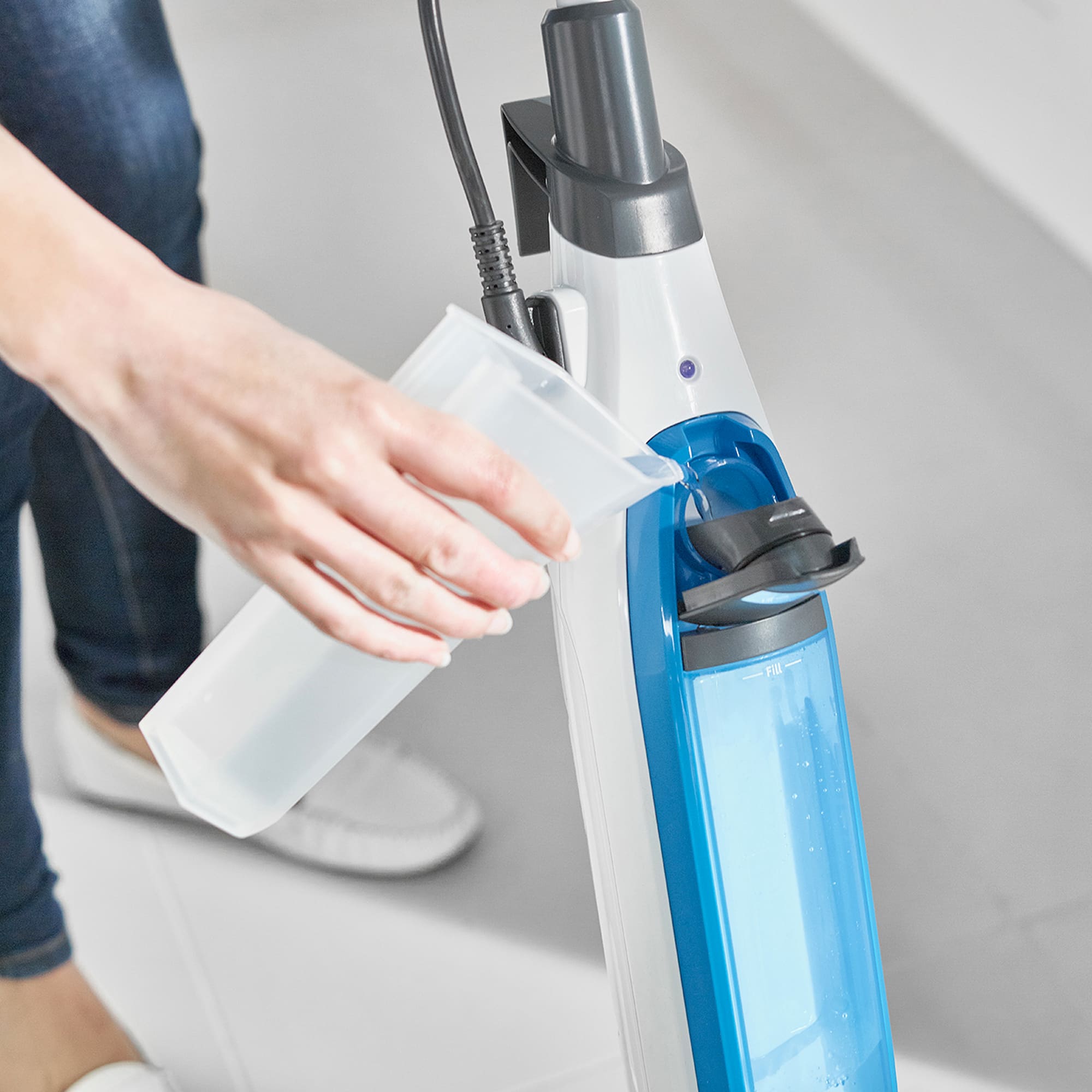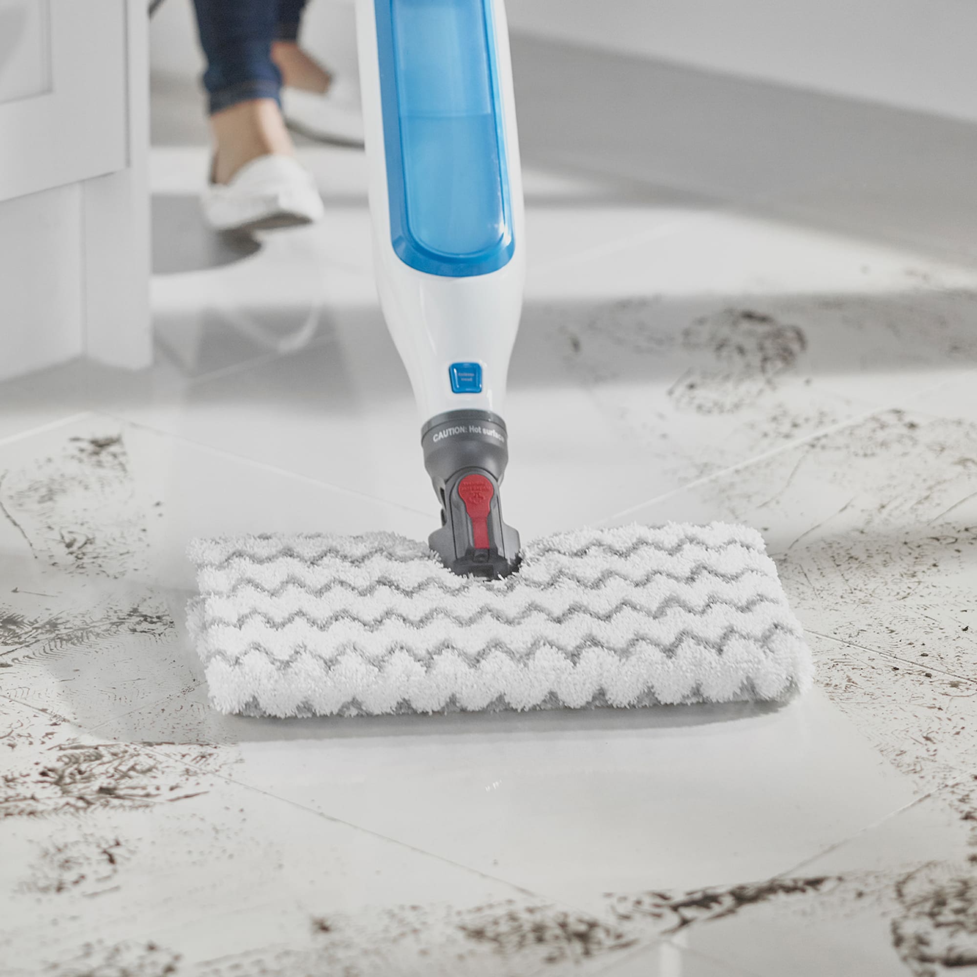 Швабра оснащена технологією Steam Blast, у цьому режимі девайс подає концентрований струмінь високотемпературної пари з сопла прямо на підлогу, після чого розріджений бруд можна зручно витерти за один прохід, просто відкинувши насадку назад.
