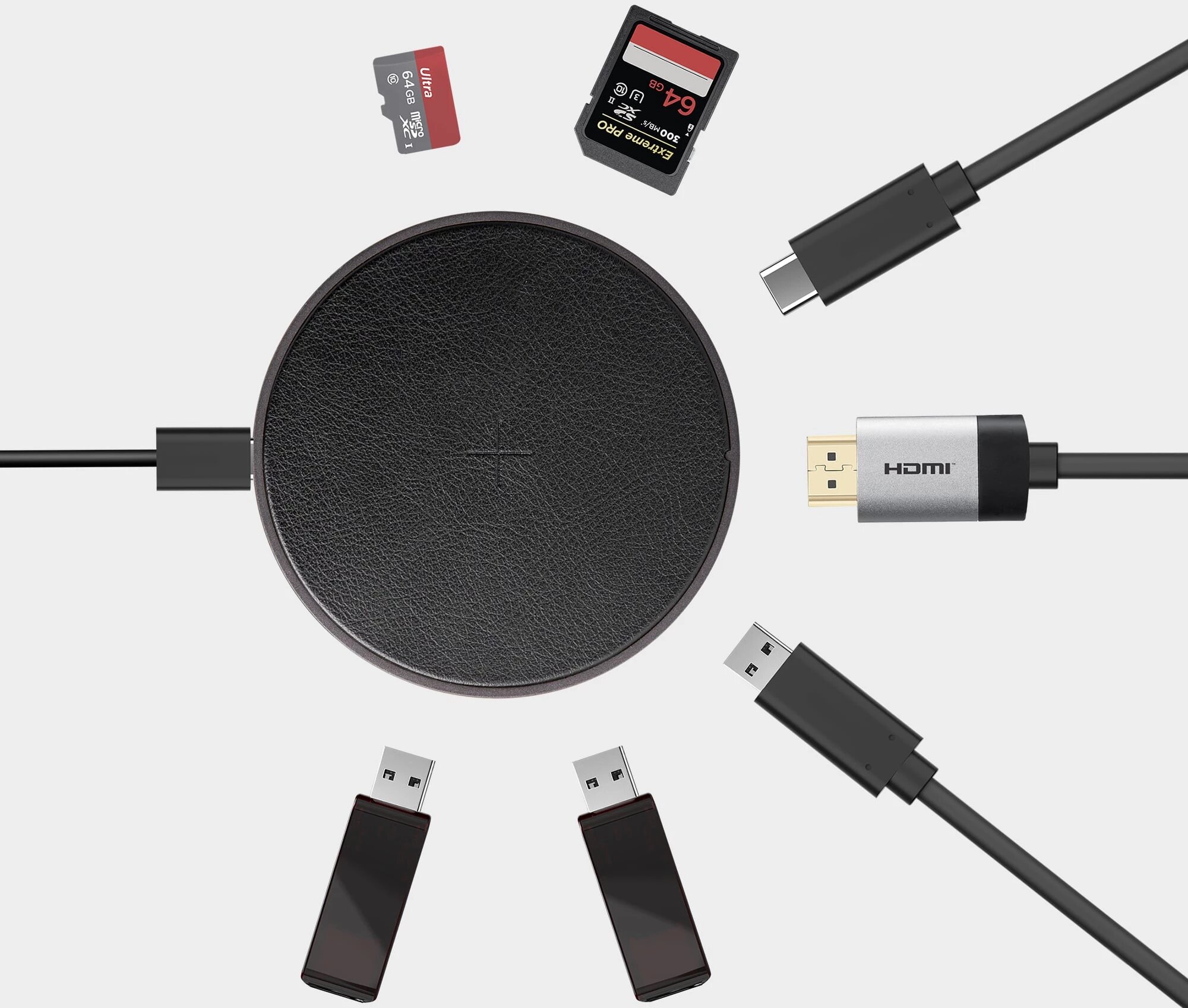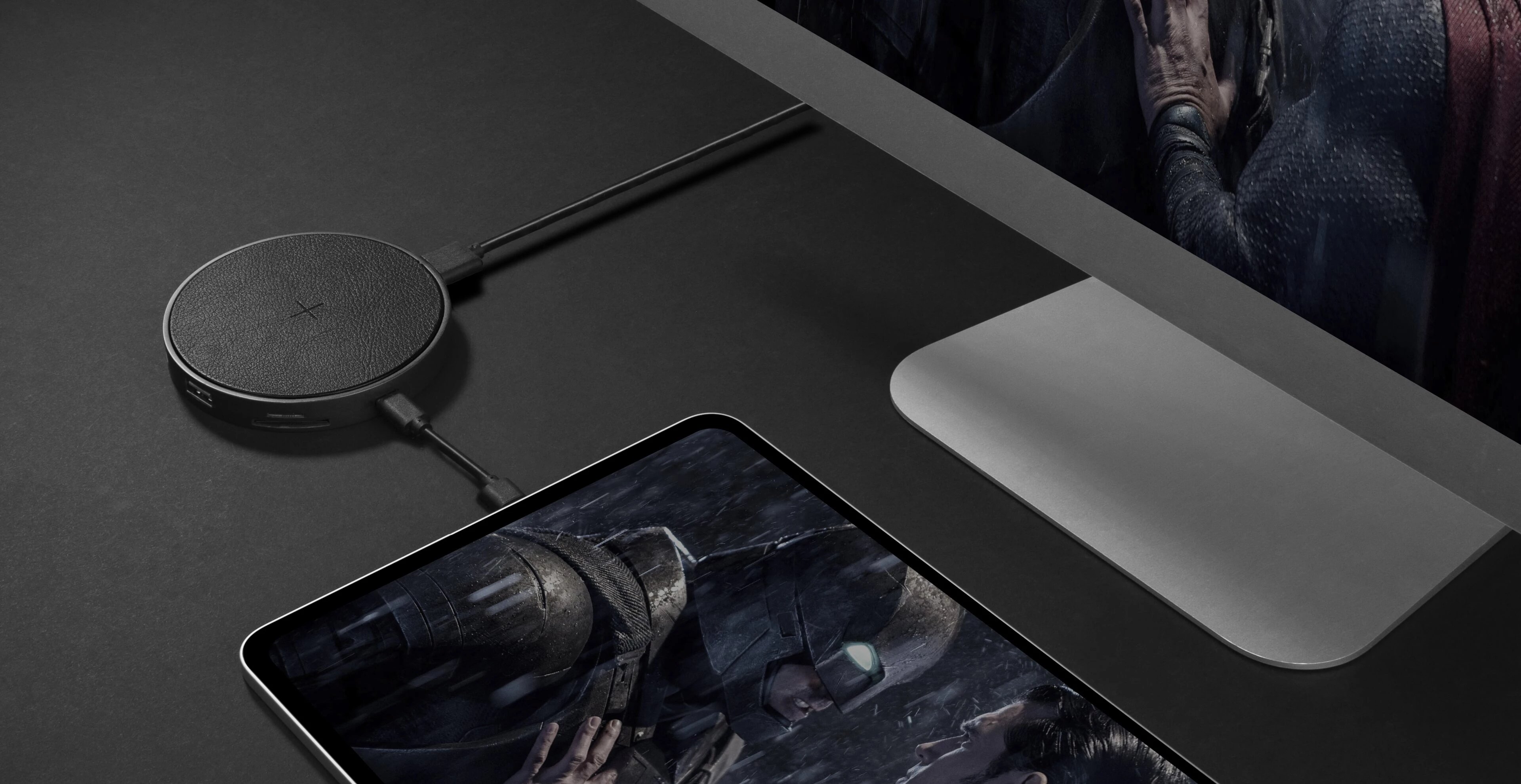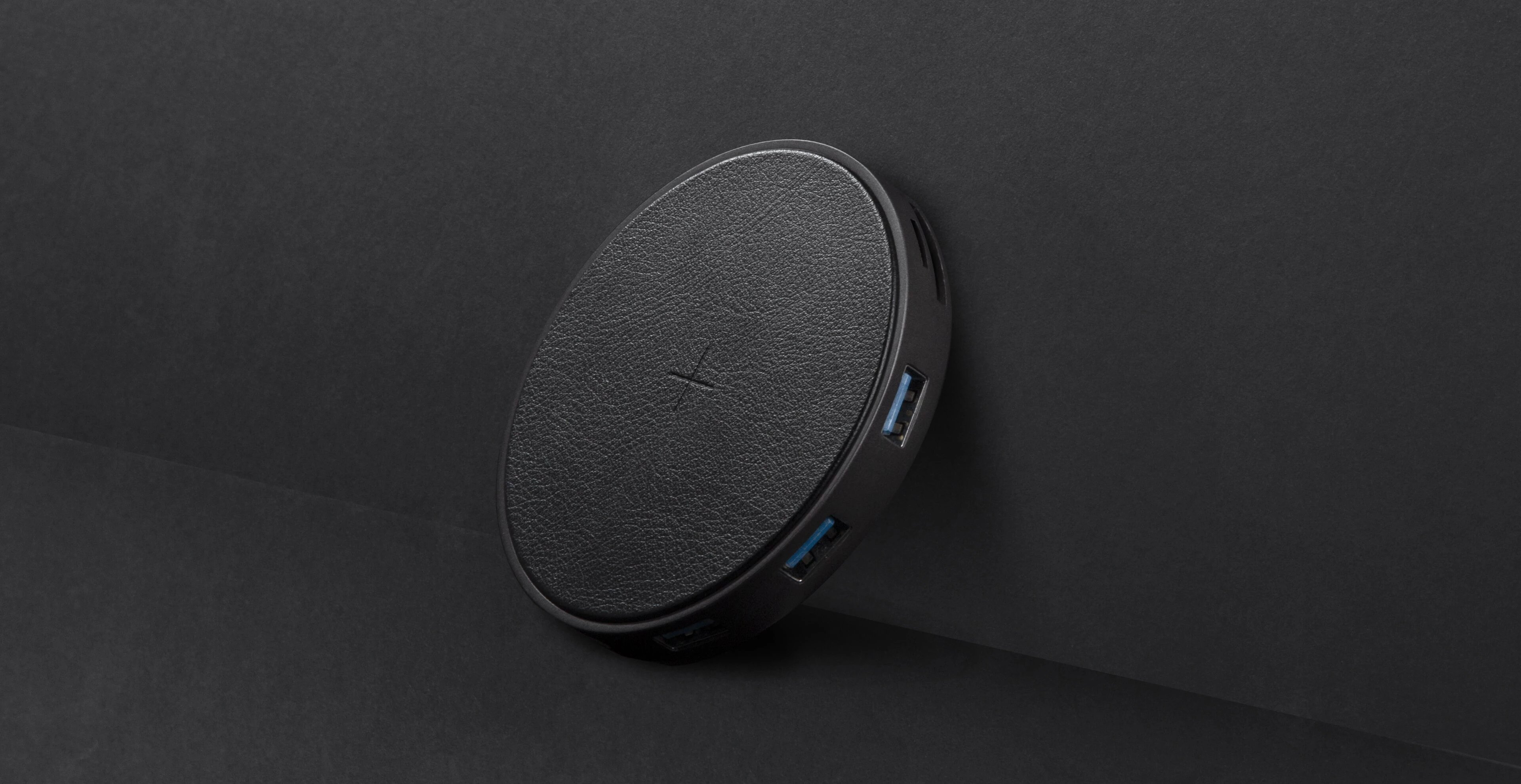 Цей девайс буде чудово виглядати на вашому робочому столі. Хаб отримав дископодібний корпус з алюмінію, товщина якого становить всього 12 міліметрів. А оздоблення робочої поверхні преміальною екошкірою надає аксесуару елегантності та запобігає подряпинам на корпусі мобільних гаджетів, що заряджаються.